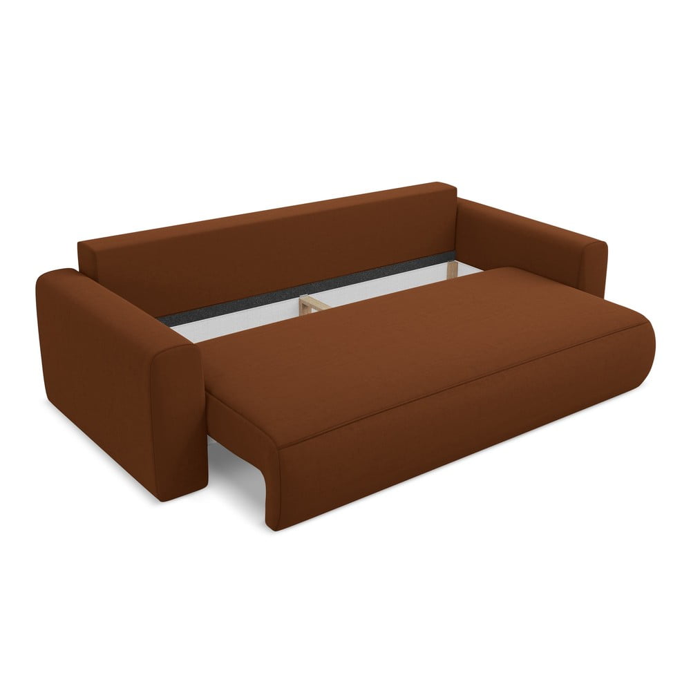 Aksamitna rozkładana/ze schowkiem sofa w kolorze terakoty 238 cm Kapua – Makamii