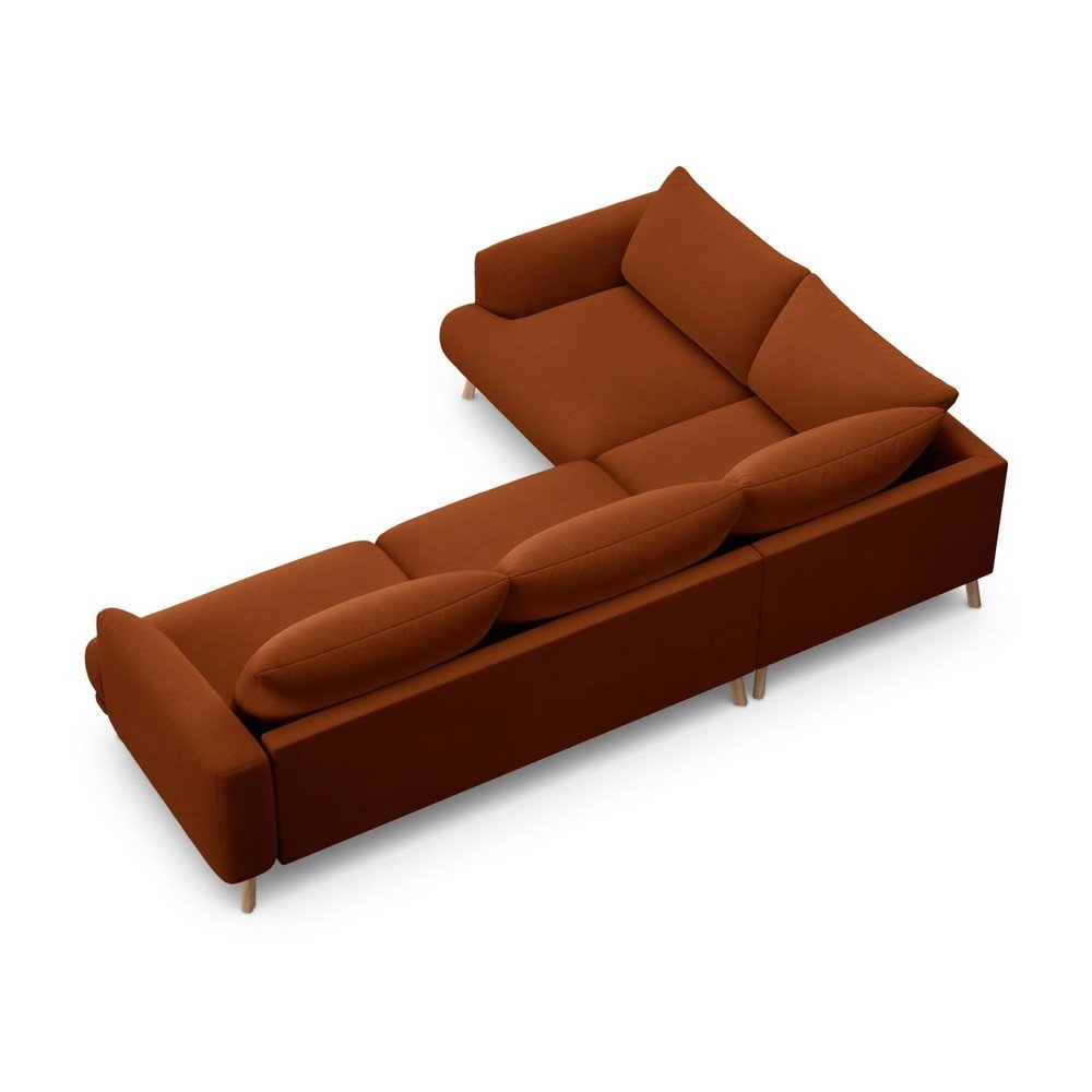 Aksamitny narożnik (lewostronny/w kształcie litery L) w kolorze terakoty Naomi – Micadoni