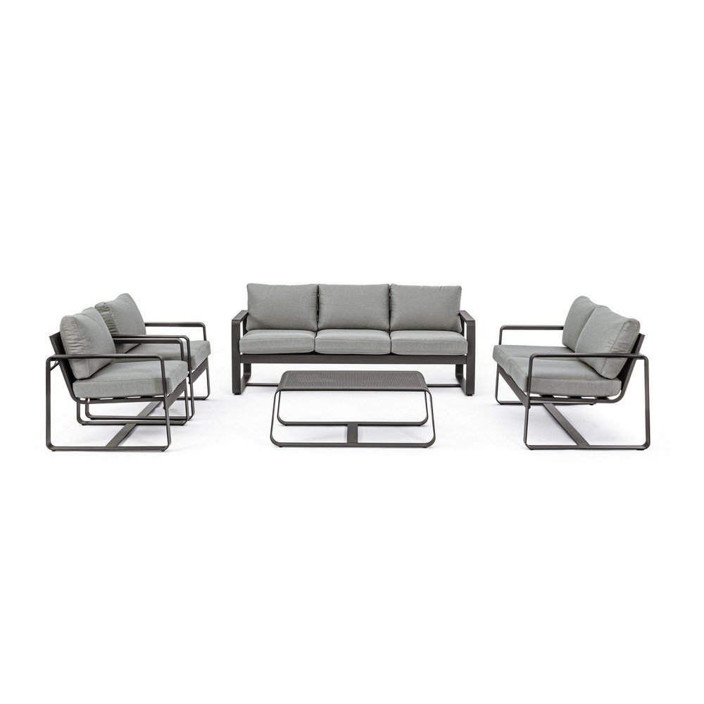 Aluminiowy stolik ogrodowy Merrigan marki Bizzotto wniesie ponadczasową elegancję na Twój taras. Jego minimalistyczny design z czystymi liniami i szarym wykończeniem z łatwością łą……