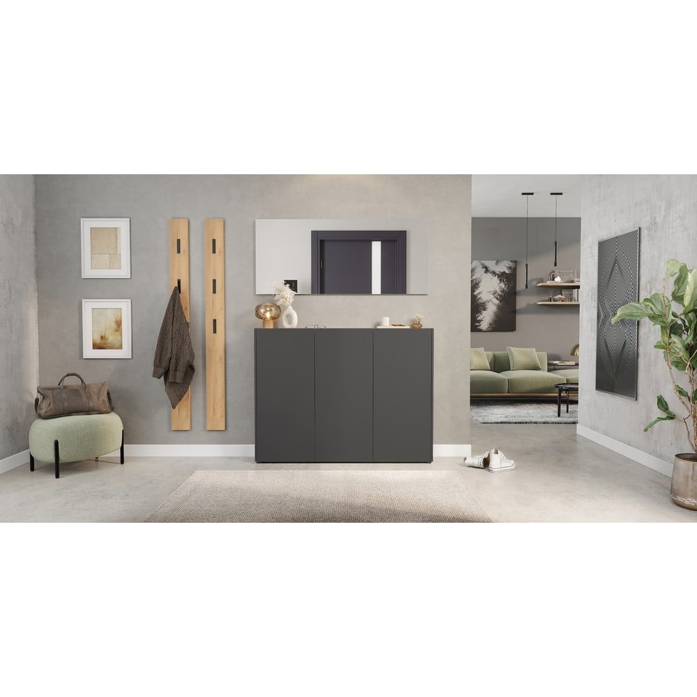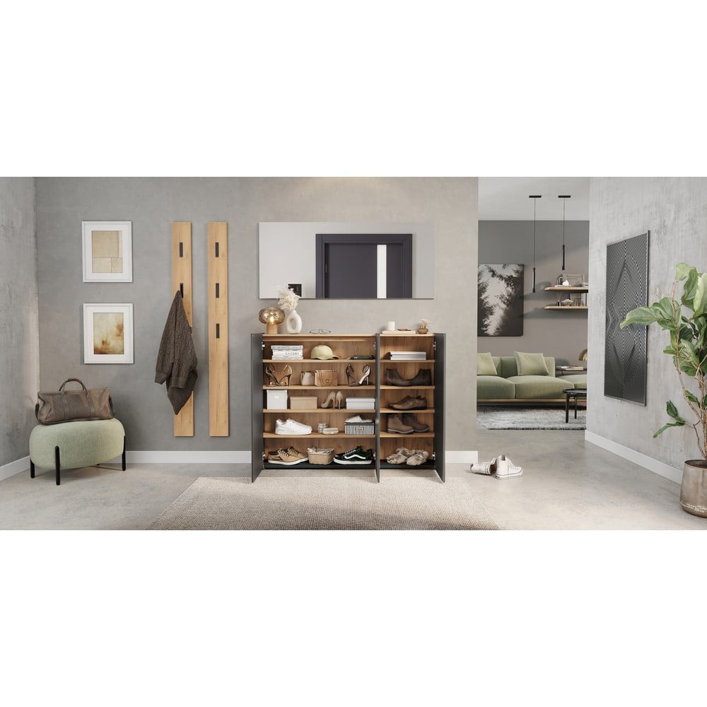 Szafka na buty Libbiano marki Germania to wielofunkcyjna szafka bez uchwytów, która idealnie pasuje do wąskich korytarzy.