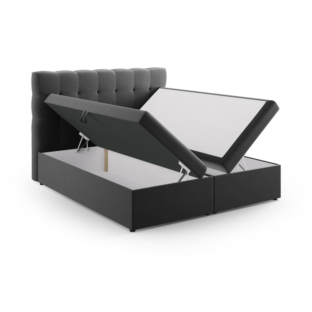 Antracytowe łóżko boxspring ze schowkiem 180×200 cm Bali – Cosmopolitan Design