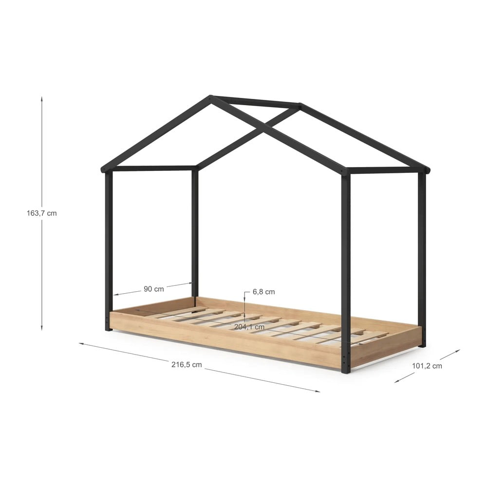 Antracytowe łóżko dziecięce Marckeric Arthur, 90×190 cm