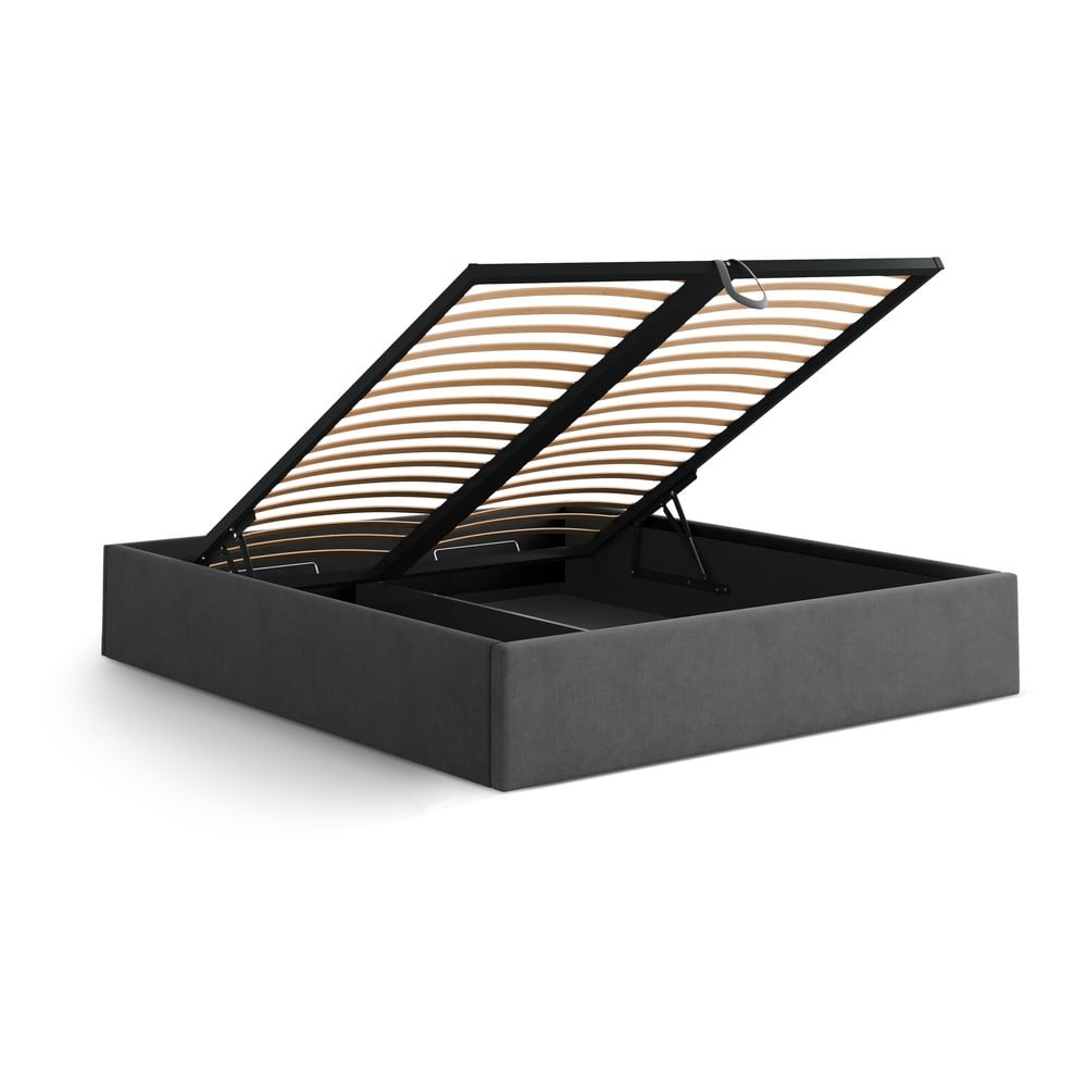 Antracytowe tapicerowane łóżko dwuosobowe ze schowkiem/bez zagłówka ze stelażem 160×200 cm Susan – Micadoni
