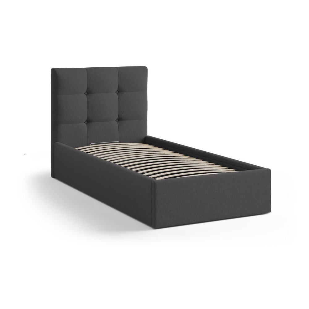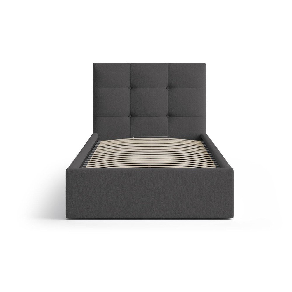 Antracytowe tapicerowane łóżko jednoosobowe ze schowkiem i stelażem 90×200 cm Phaedra – Micadoni