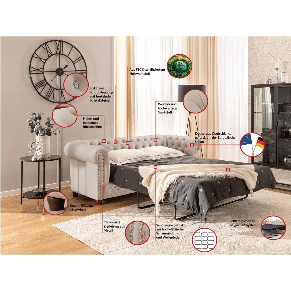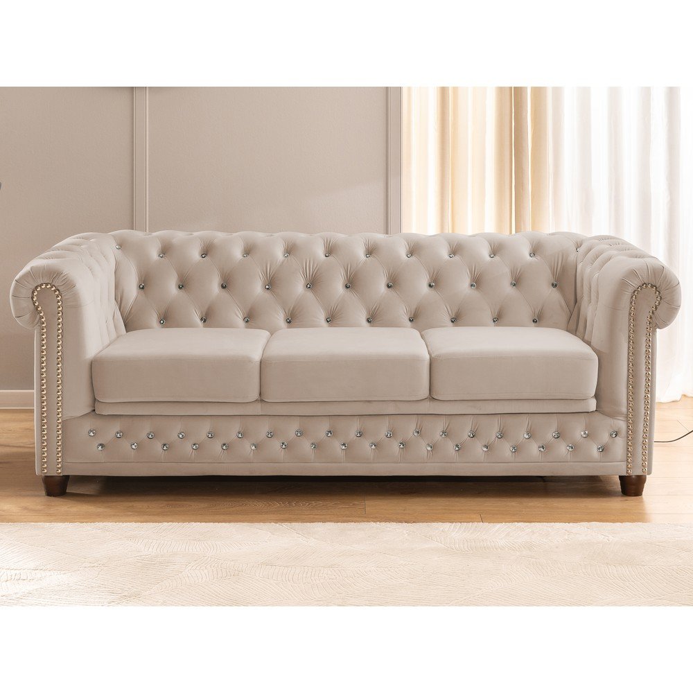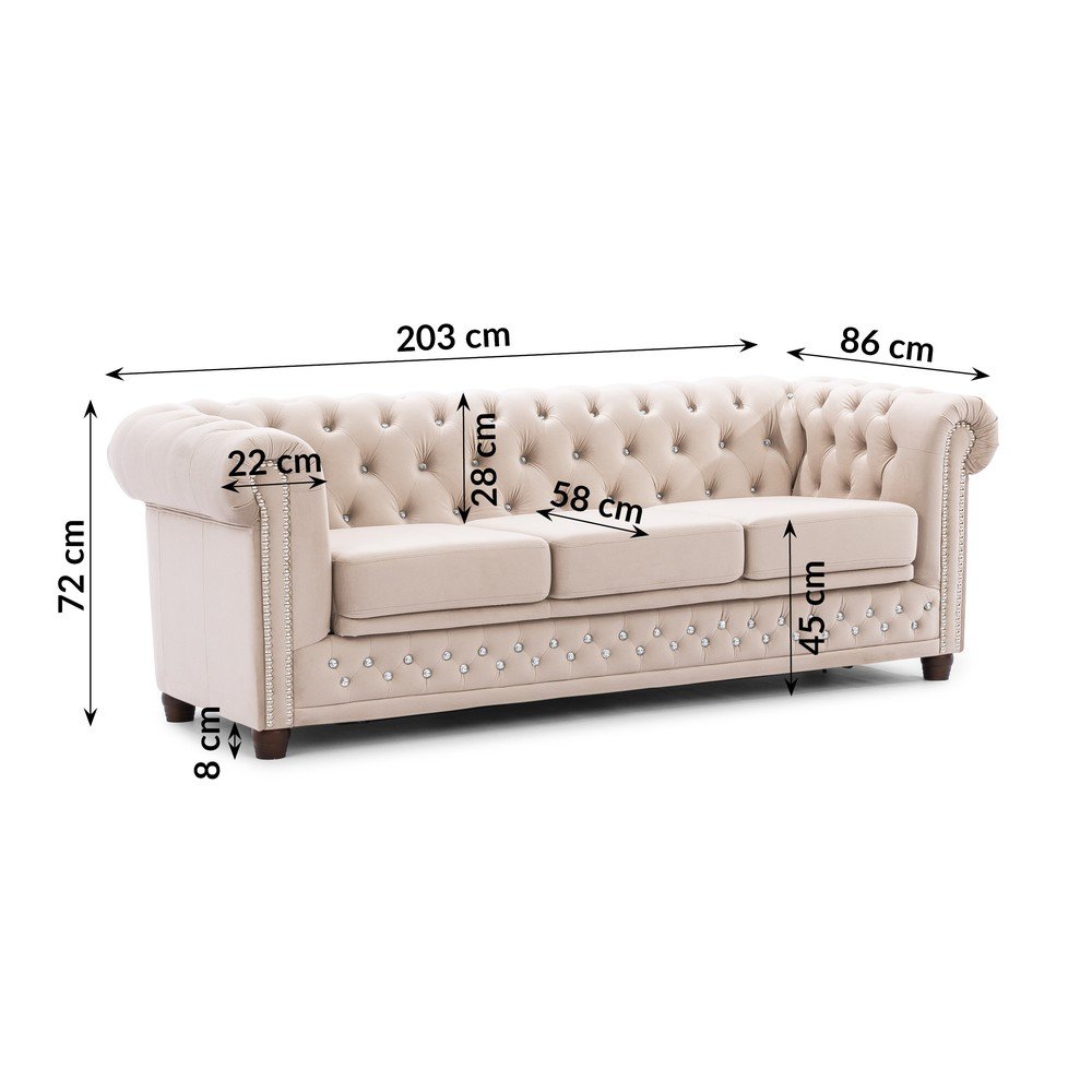 Beżowa aksamitna rozkładana sofa 203 cm York Blik – Ropez