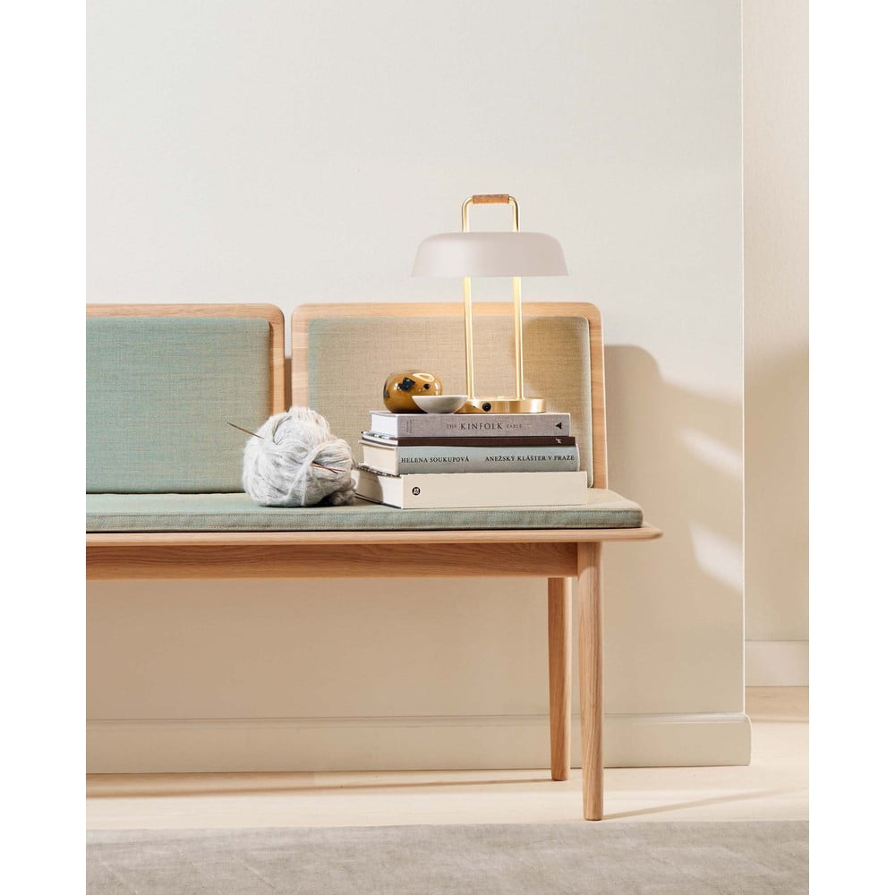 Spraw, aby każdy kąt Twojego domu był przytulny dzięki przenośnej lampie Heim marki Hammel. Metalowa konstrukcja w kolorze złotym z białym kloszem to połączenie nowoczesnego i industrialnemu stylu. Wyposażona jest w uchwyt, dzięki czemu można ją łatwo przenieść do innego pomieszczenia.