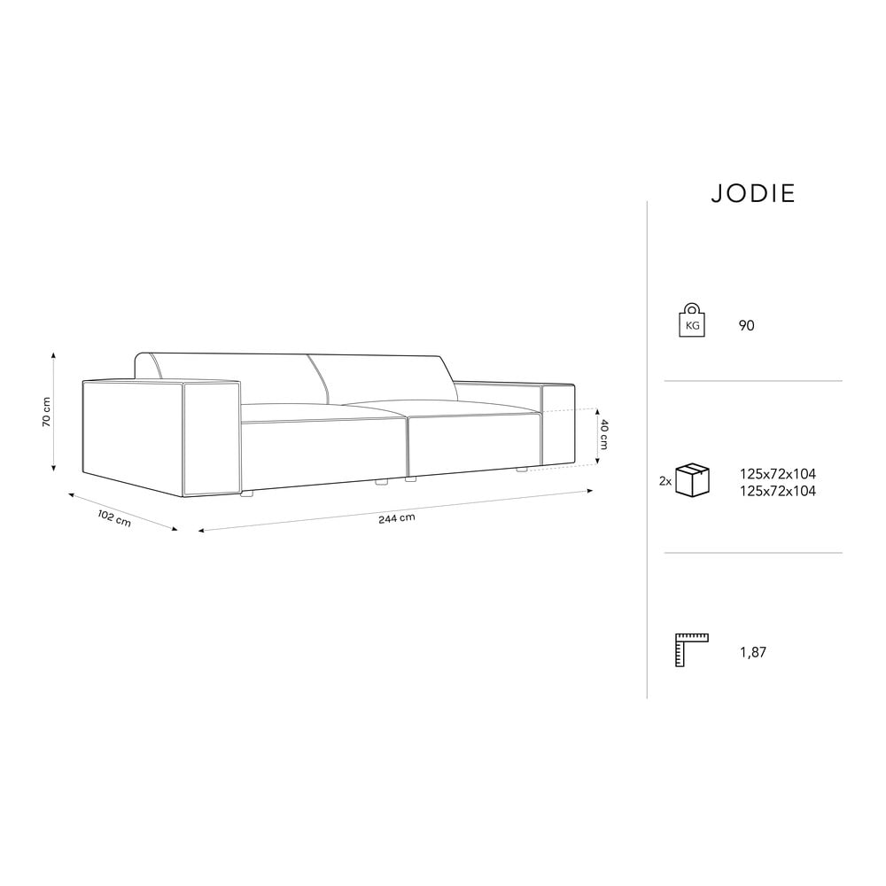 Otocz się elegancką strukturą tkaniny bouclé, z której wykonana jest sofa Jodie. Teksturowana tkanina ma widoczny płaski splot włókien. Zastosowanie najwyższej jakości włókien poliestrowych sprawia, że jest ona wytrzymała, a jednocześnie miękka w dotyku. Ten jasny mebel najlepiej sprawdzi się w nowoczesnych wnętrzach.