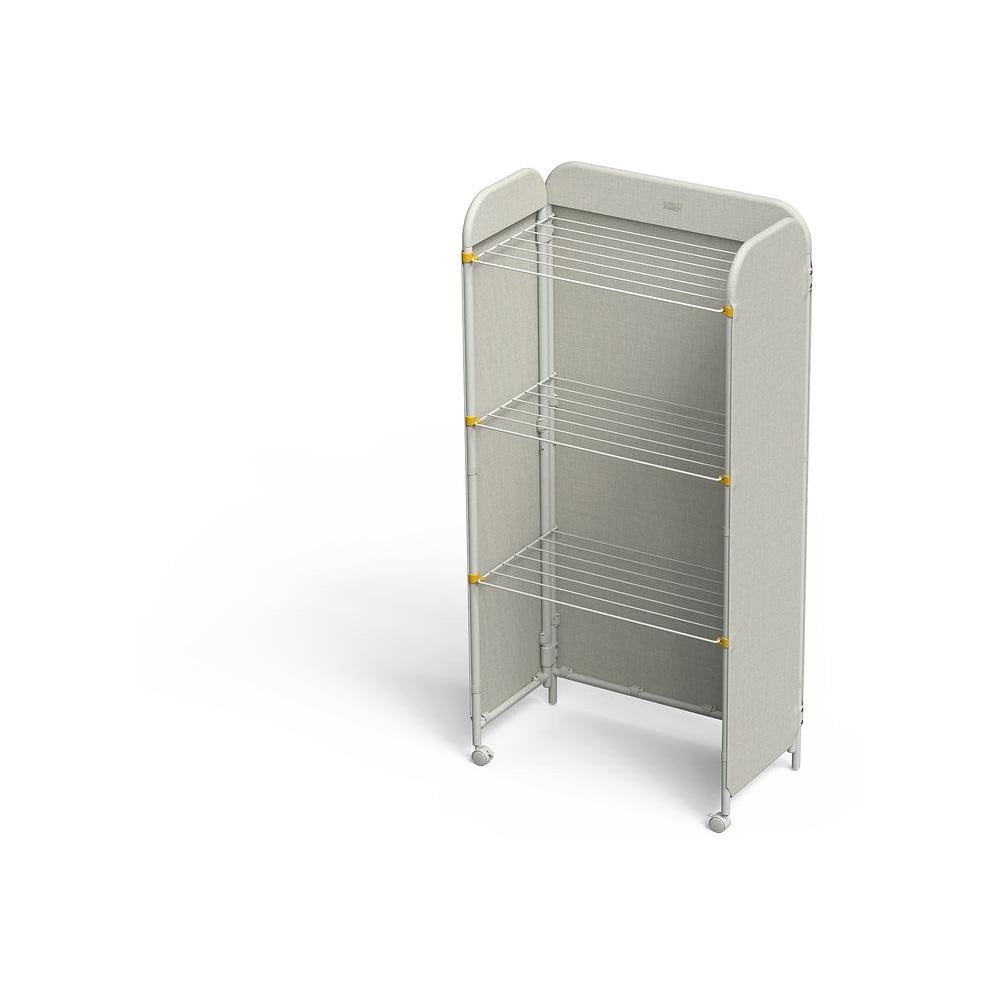 Suszarka do ubrań Eclipse marki Joseph Joseph to przestronny i praktyczny pomocnik dla każdego domu. Dzięki materiałowym bokom, które ukrywają suszące się ubrania, można ją również umieścić w przestrzeni mieszkalnej bez zakłócania ogólnego wyglądu.