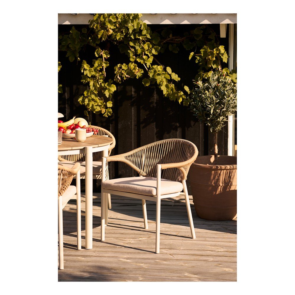 Beżowe metalowe tapicerowane krzesło ogrodowe Abela – House Nordic