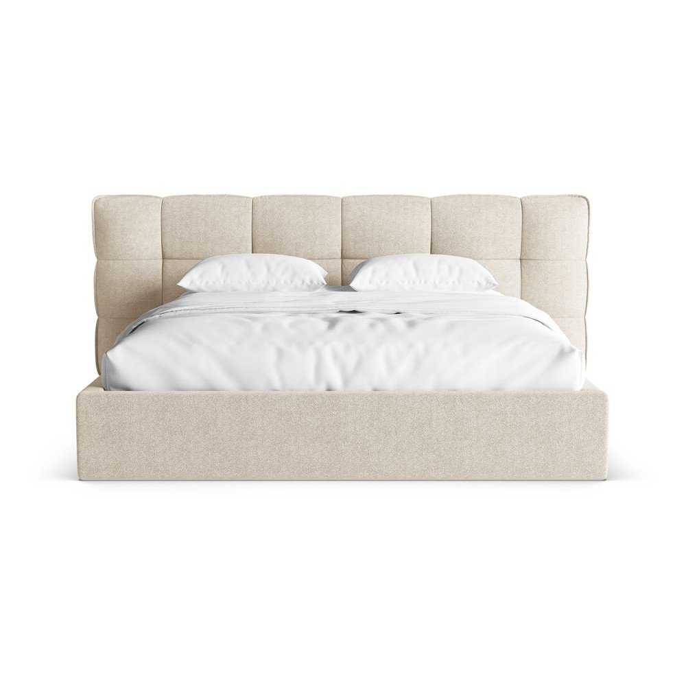 Beżowe tapicerowane łóżko dwuosobowe ze schowkiem i stelażem 140×200 cm Eric – Micadoni
