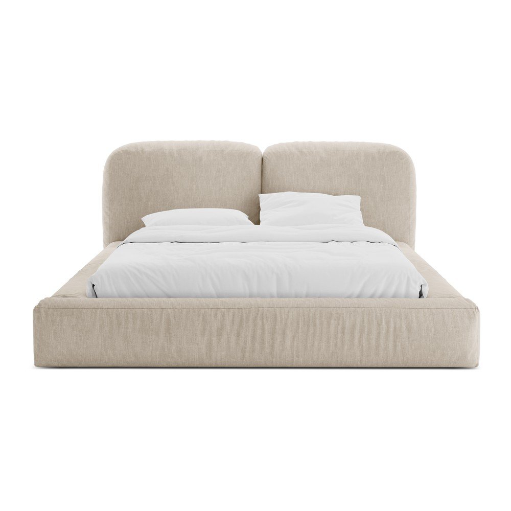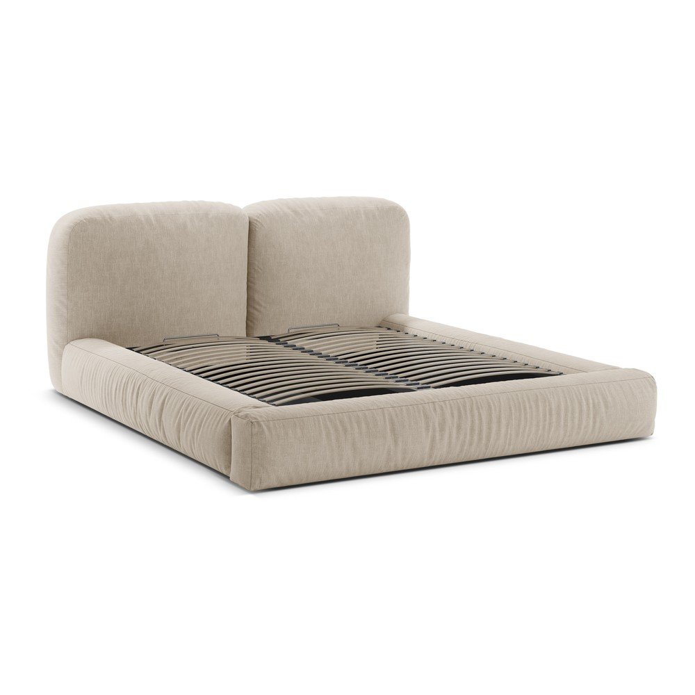 Beżowe tapicerowane łóżko dwuosobowe ze schowkiem i stelażem 160×200 cm Martina – Micadoni
