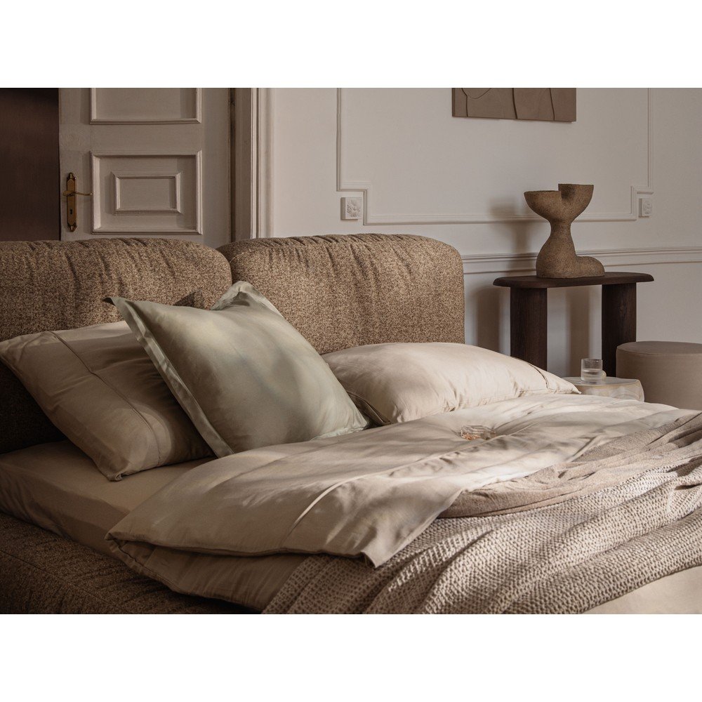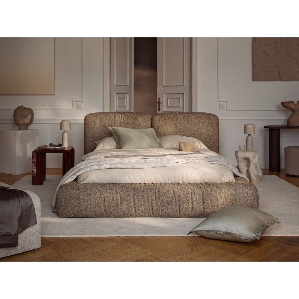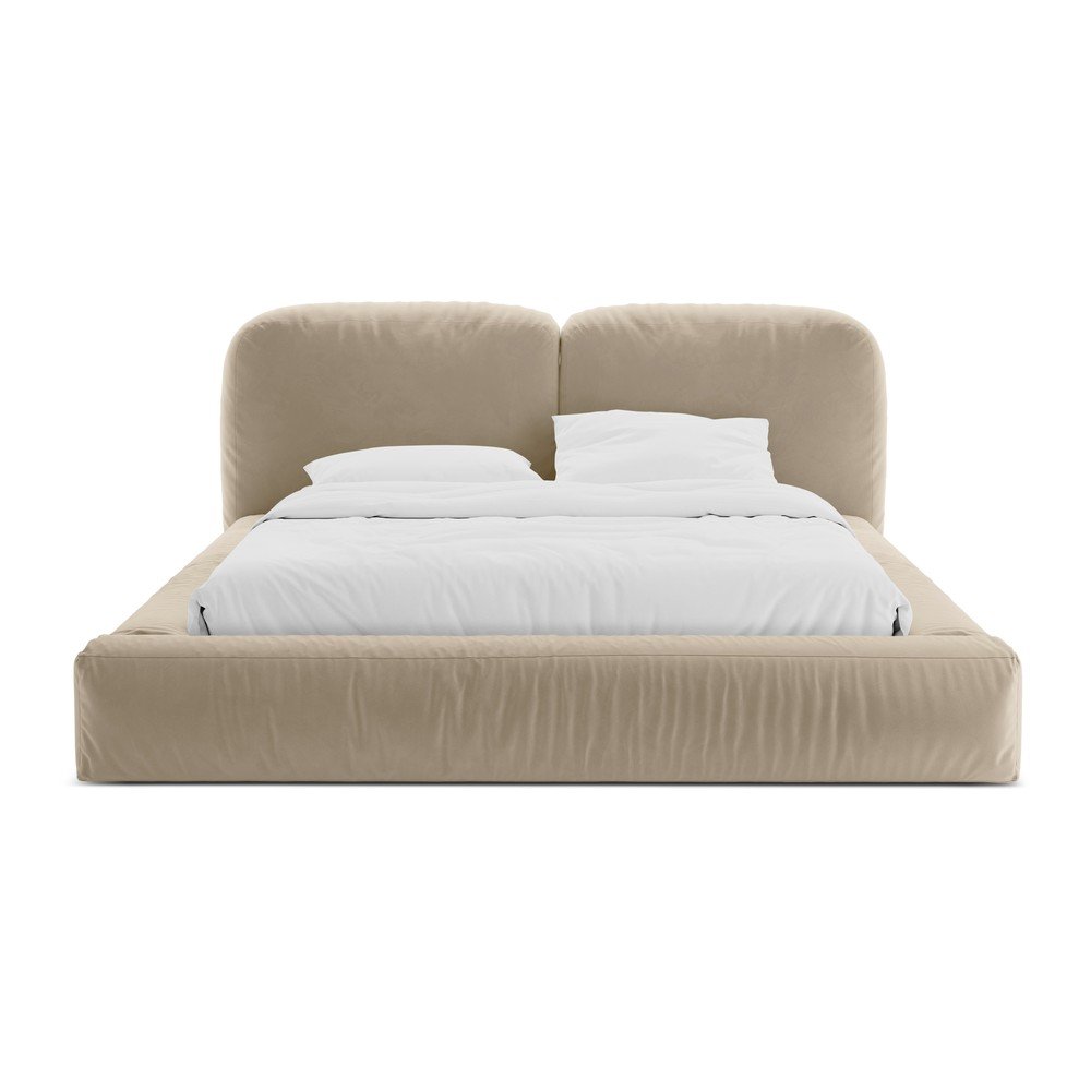 Beżowe tapicerowane łóżko dwuosobowe ze schowkiem i stelażem 180×200 cm Martina – Micadoni