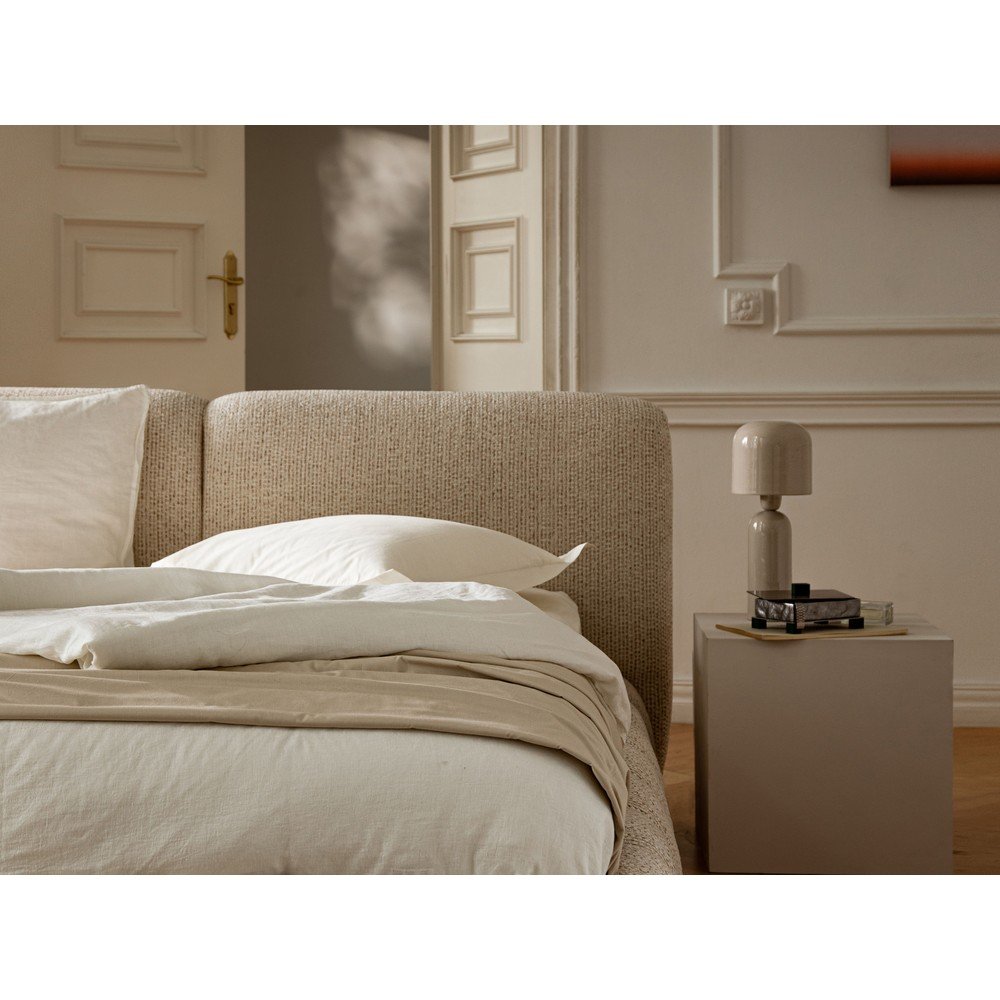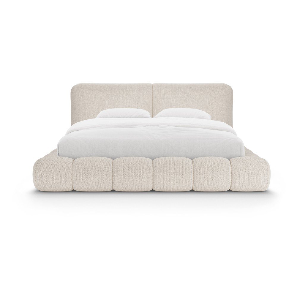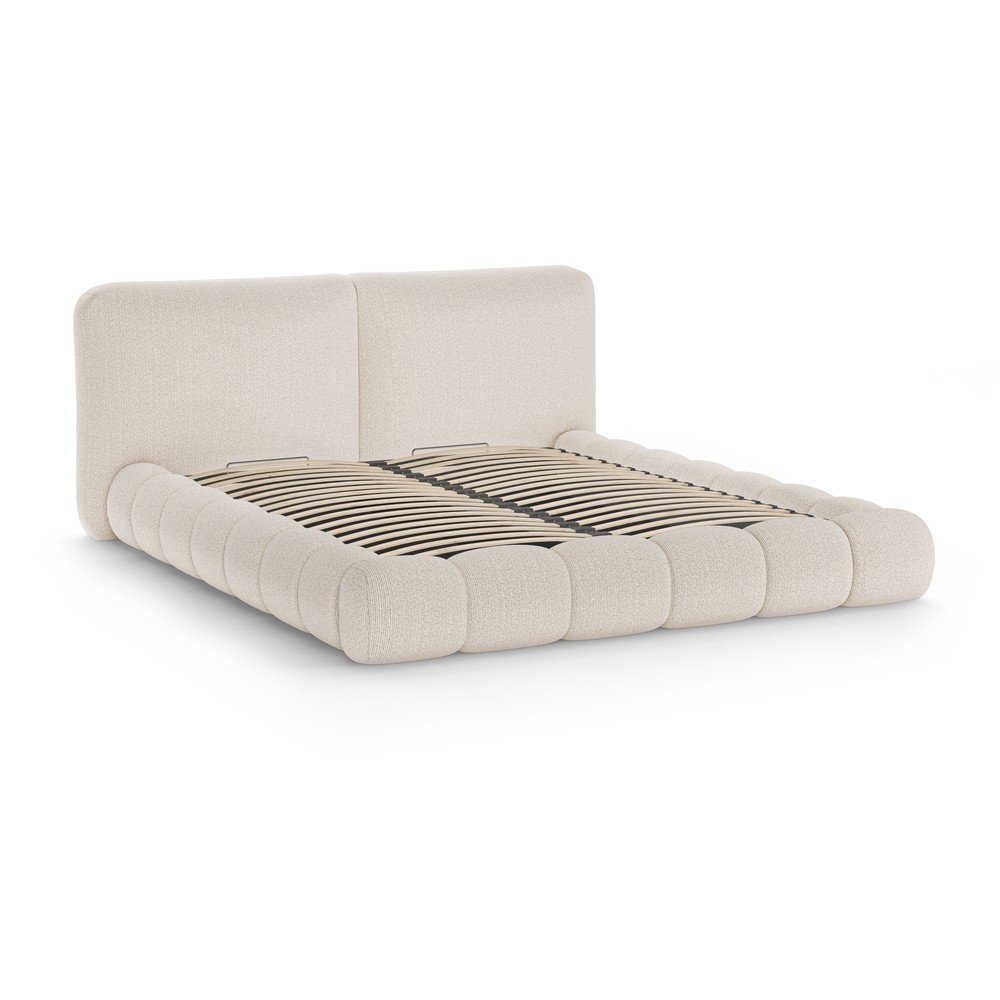 Beżowe tapicerowane łóżko dwuosobowe ze schowkiem i stelażem 180×200 cm Solange – Micadoni