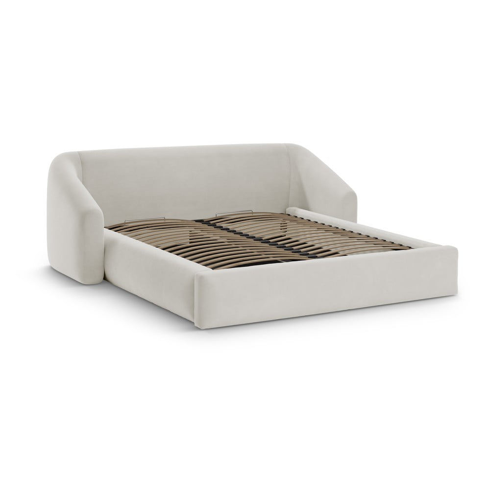 Beżowe tapicerowane łóżko dwuosobowe ze schowkiem ze stelażem 160×200 cm Campi – Cosmopolitan Design