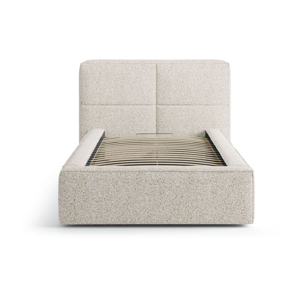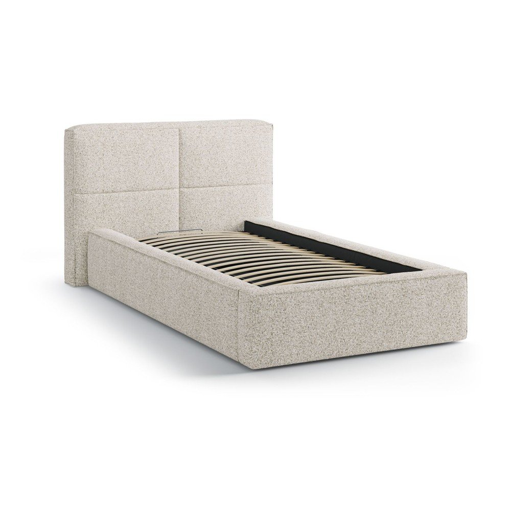 Beżowe tapicerowane łóżko jednoosobowe ze schowkiem i stelażem 90×200 cm Darren – Micadoni