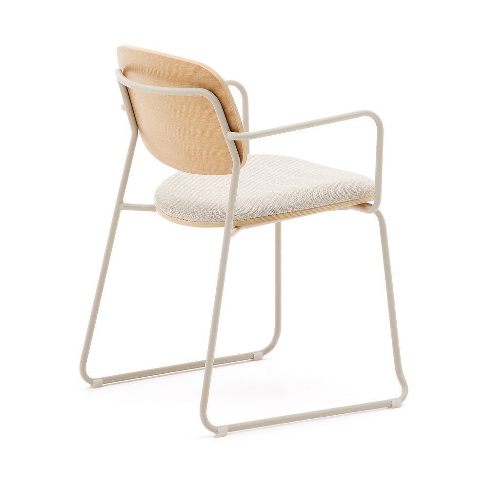 Krzesło Meli marki Kave Home to praktyczny i stylowy element wyposażenia, który z łatwością dopasujesz do wielu aranżacji. Dzięki możliwości sztaplowania, czyli układania jednego na drugim, jest niezwykle łatwe w przechowywaniu, co docenisz zwłaszcza w mniejszych przestrzeniach. Siedzisko i oparcie są tapicerowane przyjemną w dotyku tkaniną szenilową, a ich wewnętrzne wzmocnienie wykonano ze sklejki topolowej. Stabilność zapewniają metalowe nogi z mikrostrukturą.