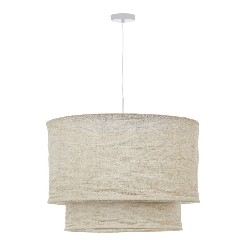 Beżowy abażur Mariela marki Kave Home jest wykonany z lnu i ma wewnętrzną metalową konstrukcję. Do montażu należy dokupić kabel wiszący, na przykład z kolekcji Fulvia i Kaede.