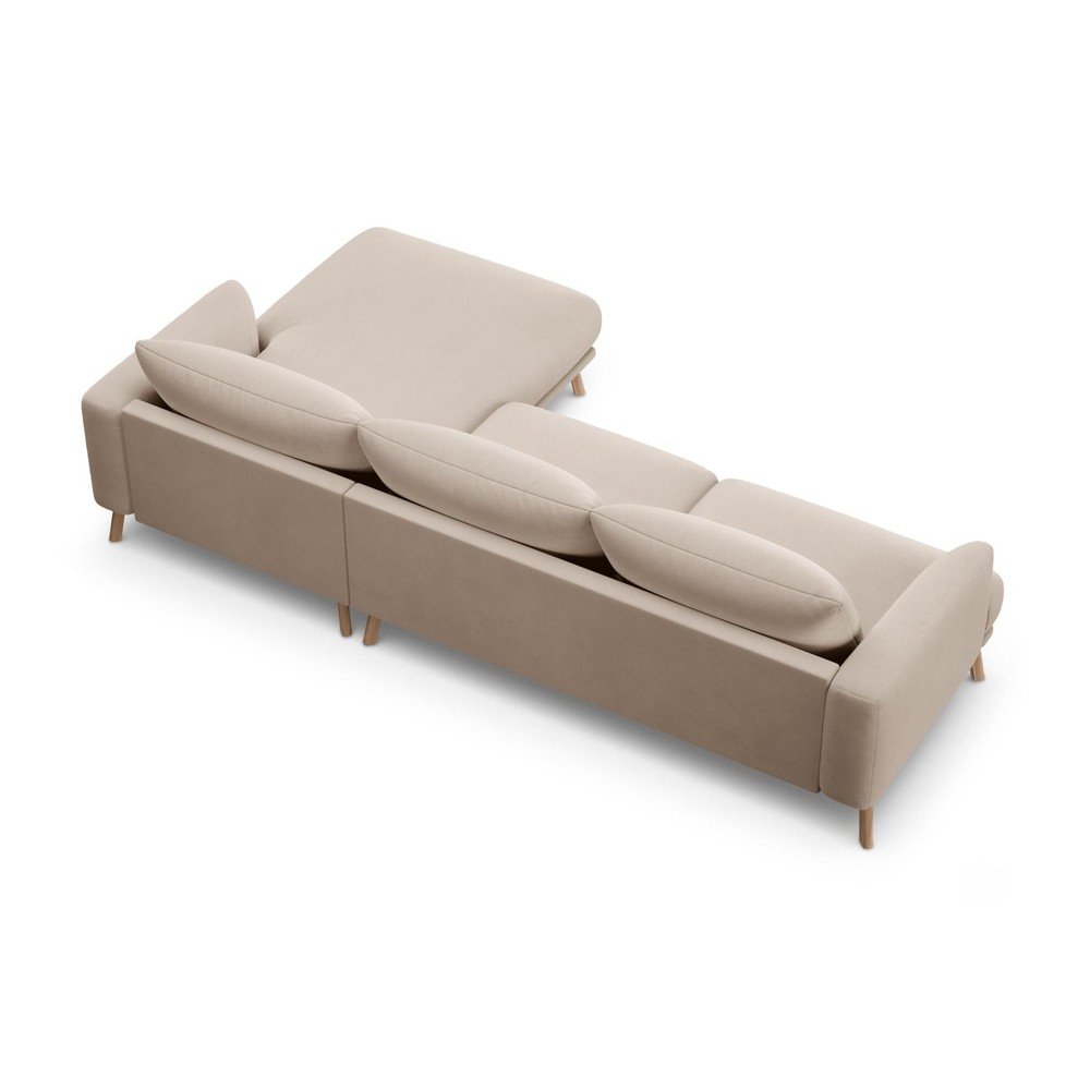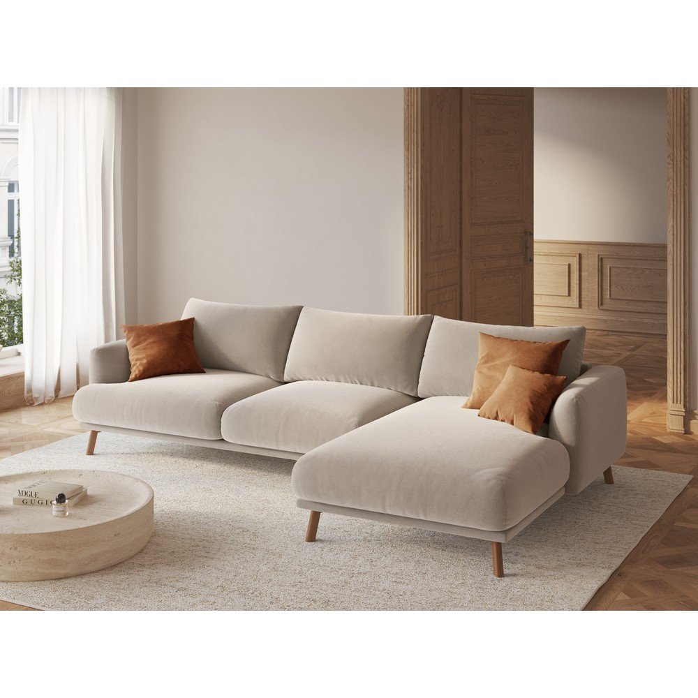 Beżowy aksamitny narożnik (prawostronny/z szezlongiem) Naomi – Micadoni