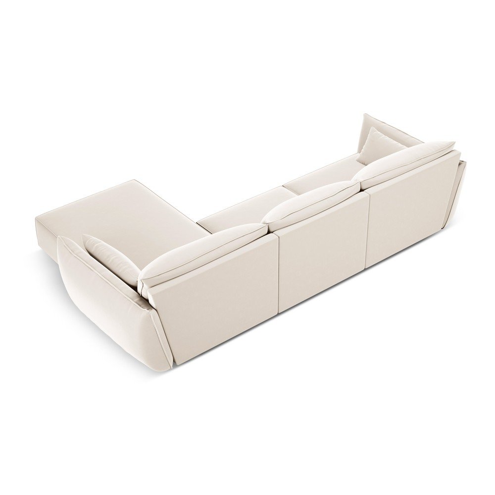 Beżowy aksamitny narożnik (prawostronny/z szezlongiem) Vanda – Mazzini Sofas