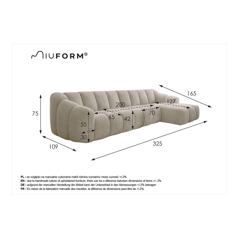 Beżowy narożnik (prawostronny/z szezlongiem) Shell – Miuform