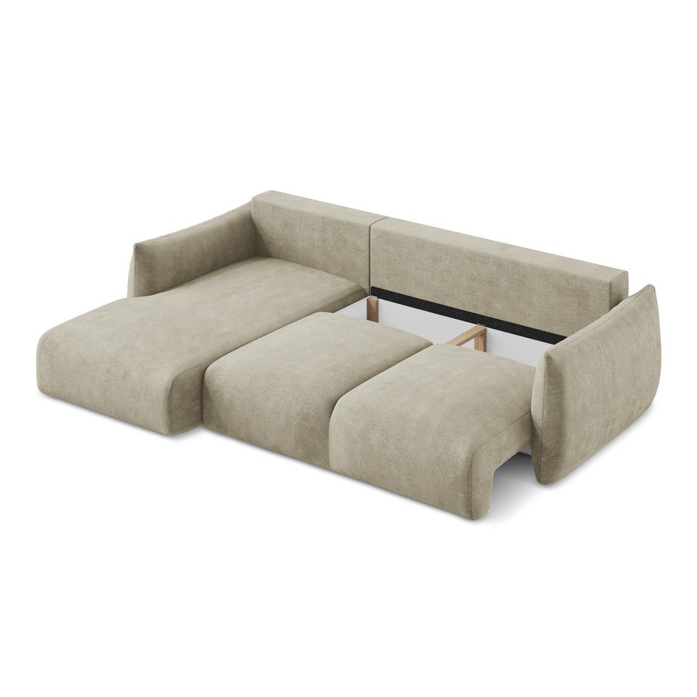 Beżowy rozkładany narożnik z tkaniny szenilowej (lewostronny/z szezlongiem) Leila – Makamii