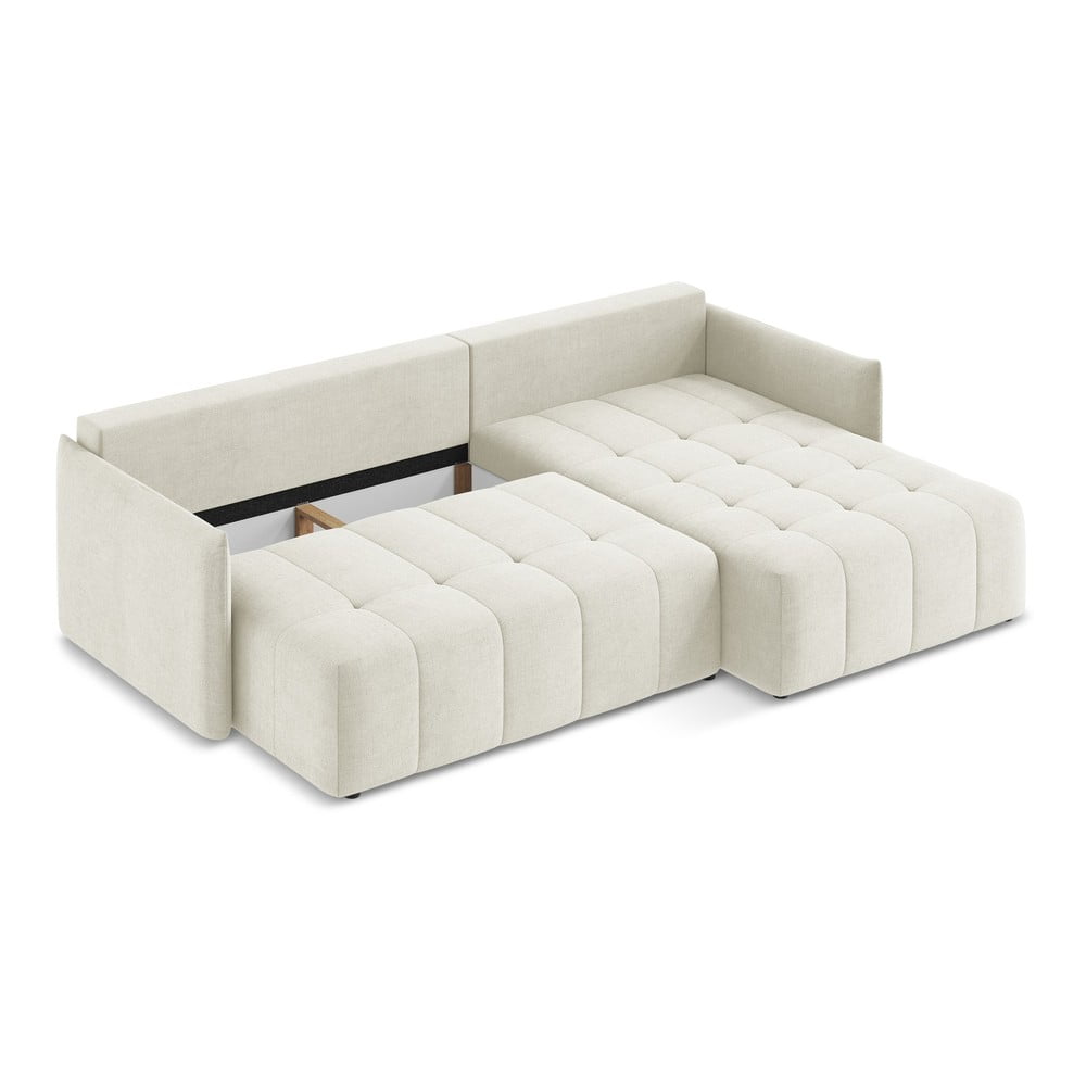Beżowy rozkładany/ze schowkiem narożnik (prawostronny/z szezlongiem) Moku – Makamii