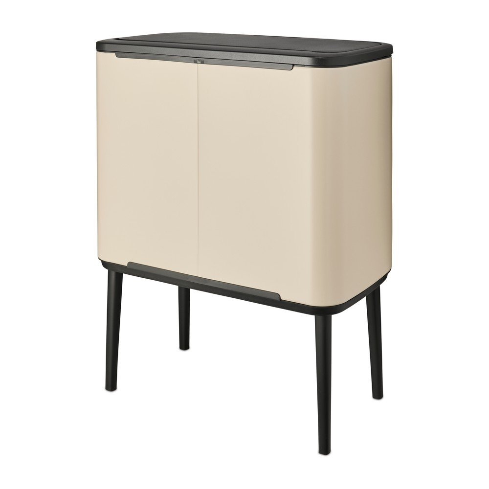 Dzięki dwóm oddzielnym plastikowym pojemnikom (11 i 23 litry) ten kosz jest idealny do łatwej segregacji odpadów. Każdy z nich można łatwo wyjąć z podstawy, co ułatwia czyszczenie. Dzięki systemowi Soft-Touch pokrywa otwiera się po lekkim ściśnięciu i pozostaje otwarta aż do ponownego zamknięcia.