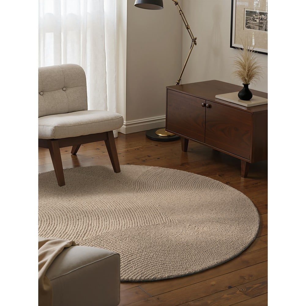 Beżowy wełniany okrągły dywan tkany ręcznie ø 200 cm Eleni Light Beige – Hanse Home