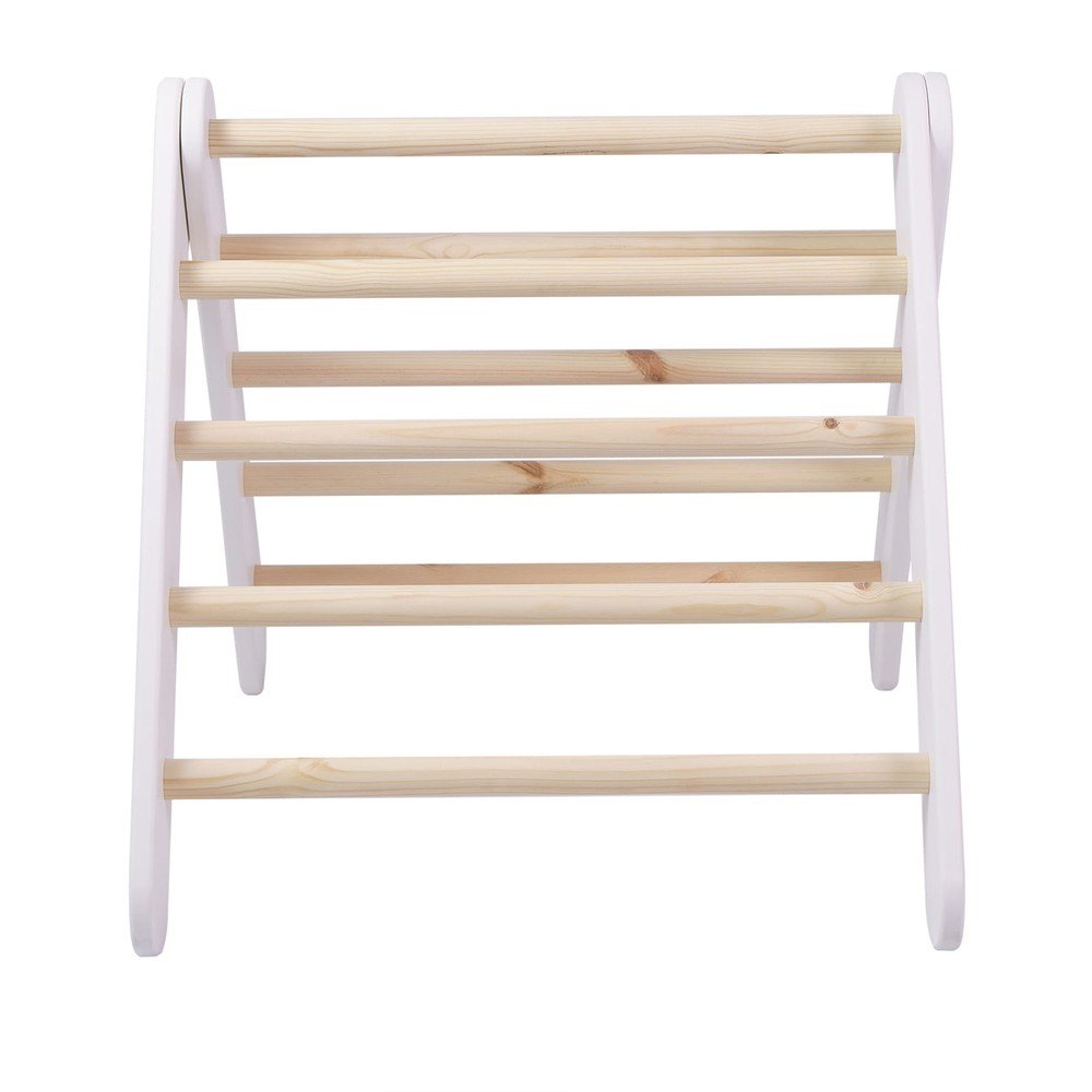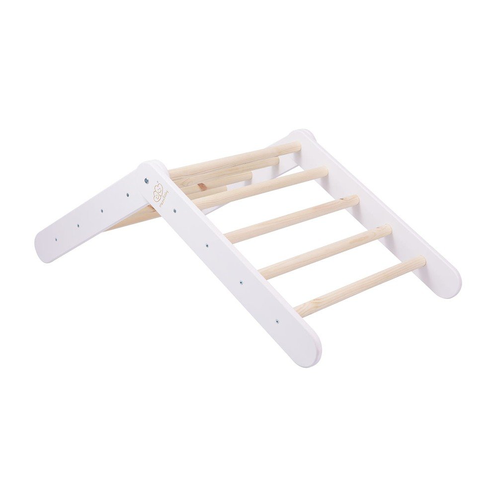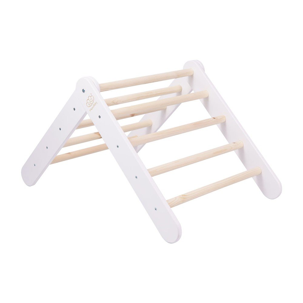 Zestaw jest wykonany z litego drewna i jest zgodny z podejściem Montessori. Cała konstrukcja jest stabilna, lekka i bezpieczna. Trójkątną drabinkę można przykryć kocem, tworząc przytulny namiot tipi, który dzieci uwielbiają. Drewno jest pokryte ekologiczną farbą, która pomaga zachować jego wygląd.