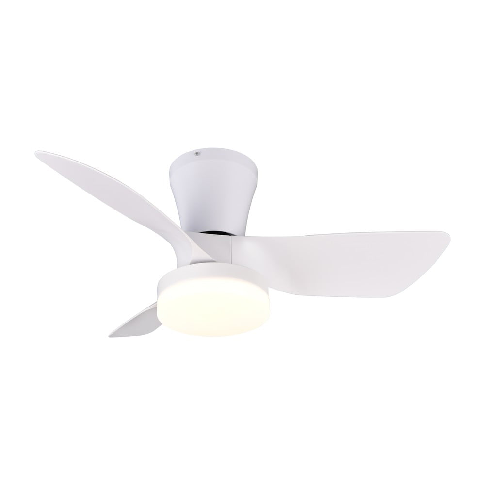 Biała lampa sufitowa LED Randers marki Trio łączy w sobie nowoczesne oświetlenie i praktyczną wentylację. Oprócz światła zapewnia chłodzenie latem i pomaga rozprowadzić ciepłe powietrze zimą.