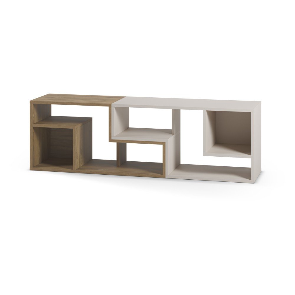 Biała/w naturalnym kolorze narożna szafka pod TV w dekorze dębu 145x45x35 cm Glina – Marckeric