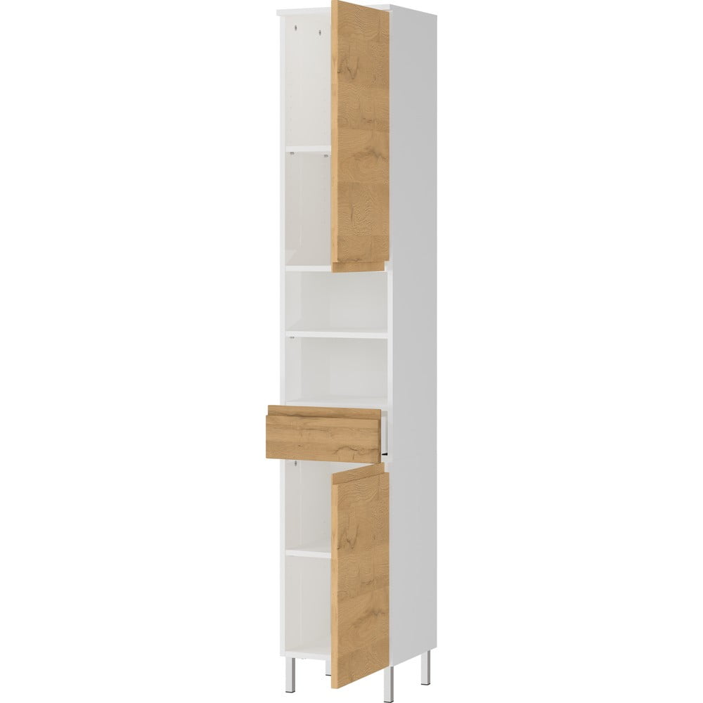 Biała wysoka szafka łazienkowa w dekorze dębu 34×190 cm Torrance – Germania