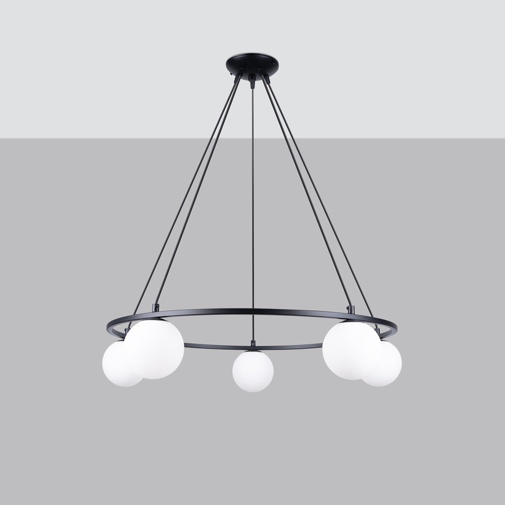 Biało-czarna lampa wisząca ze szklanym kloszem Umerta – Sollux