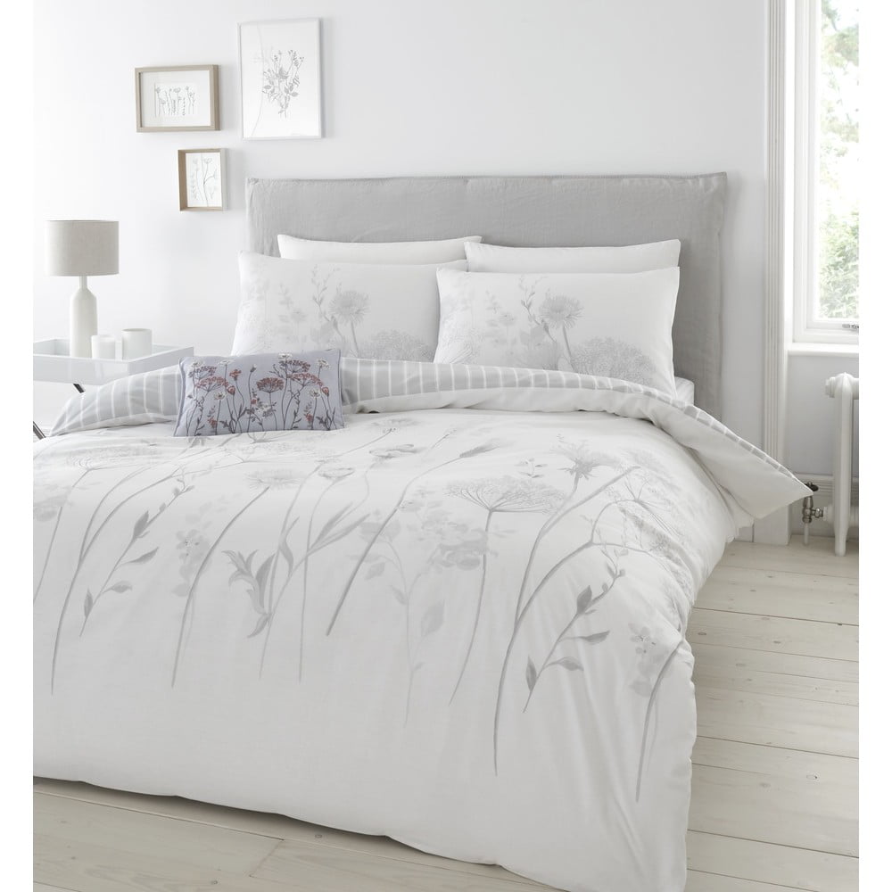 Biało-szara pościel dwuosobowa 230×220 cm Meadowsweet Floral – Catherine Lansfield