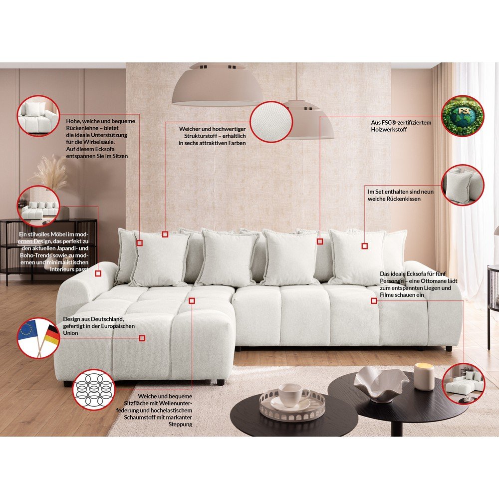 Biały narożnik (lewostronny/z szezlongiem) Albane – Ropez