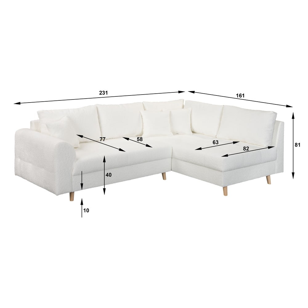 Biały narożnik z materiału bouclé (prawostronny) Ariella – Ropez