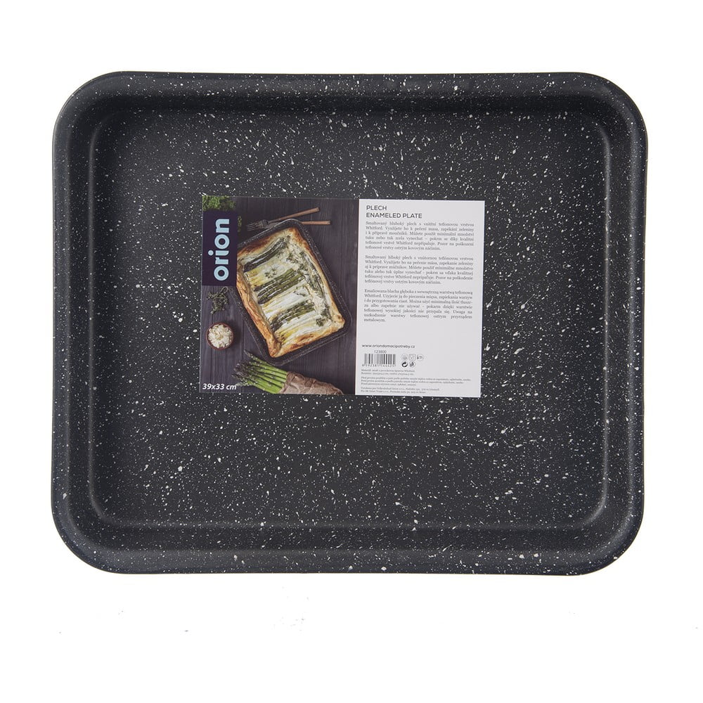 Dzięki wysokiej jakości nieprzywierającej powierzchni z wewnętrzną powłoką teflonową Whitford, blaszka Orion Grande nadaje się do pieczenia z minimalną ilością tłuszczu. Wymiary wewnętrzne wynoszą 37 x 30 x 4,5 cm, a zewnętrzne 39 x 33 x 4,5 cm.