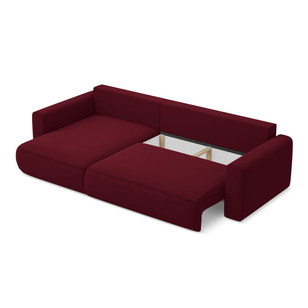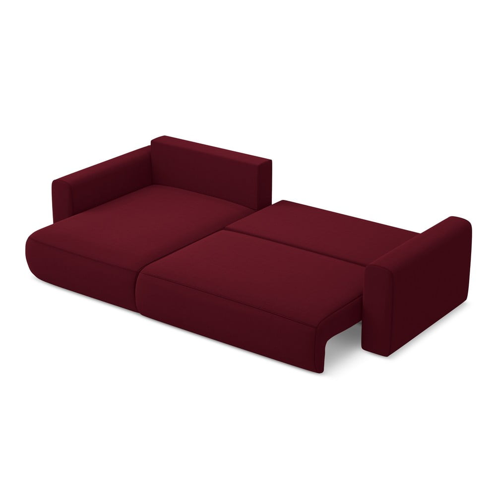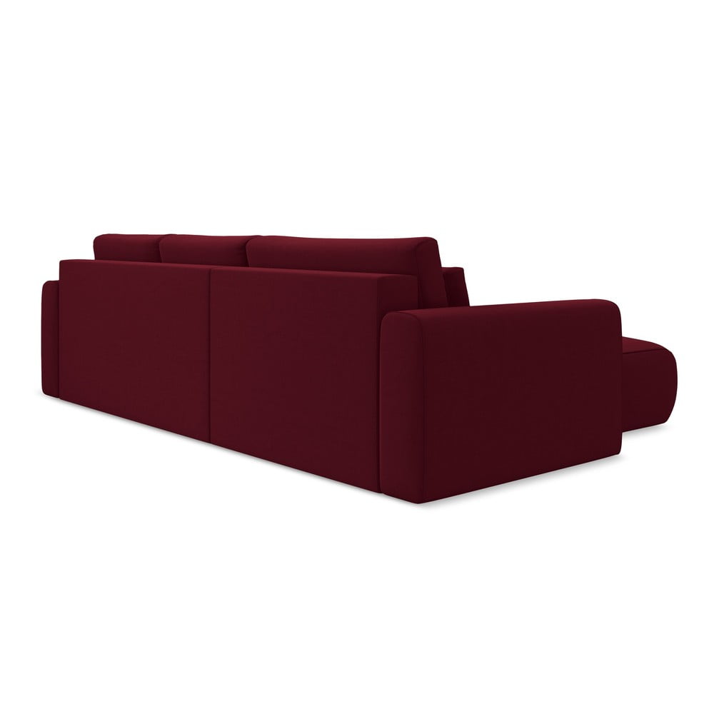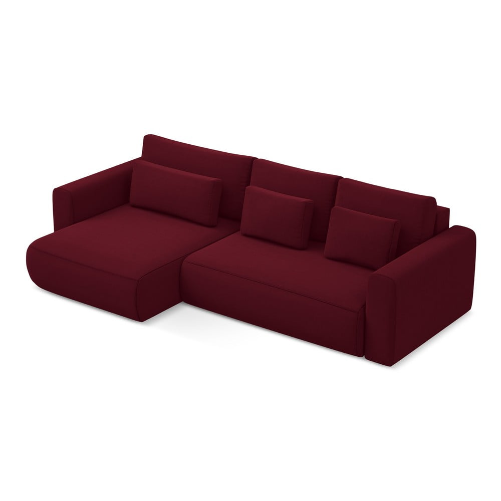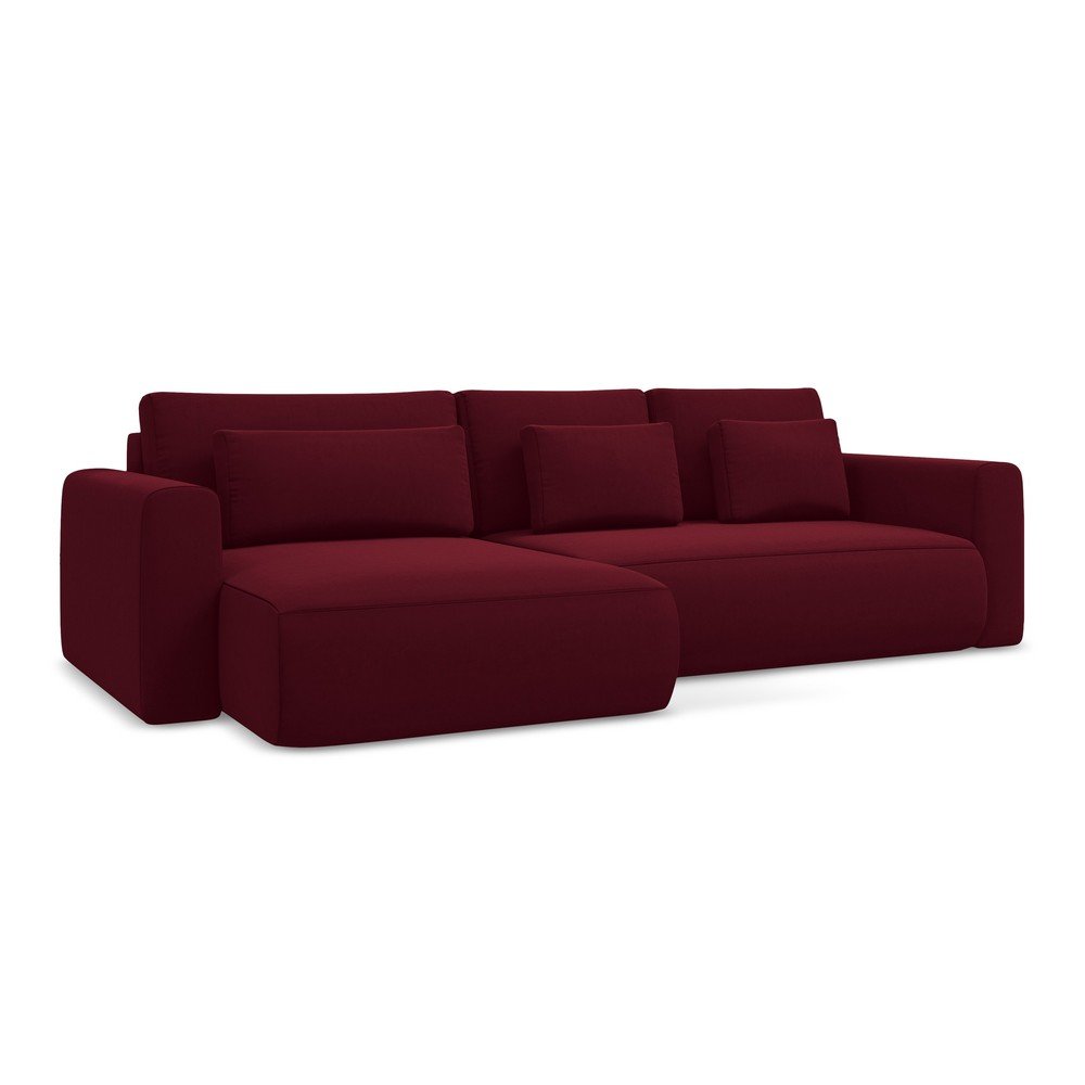 Bordowy aksamitny rozkładany/ze schowkiem narożnik (lewostronny/z szezlongiem) Kapua – Makamii