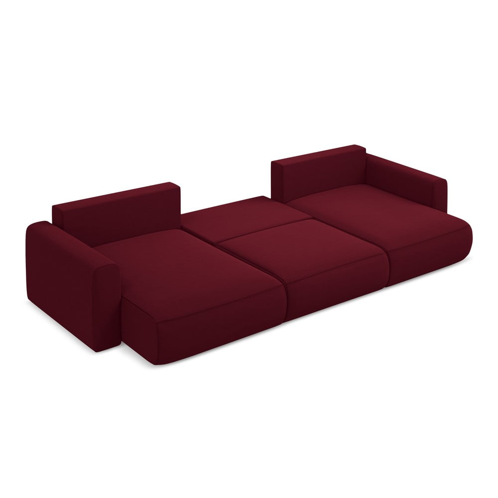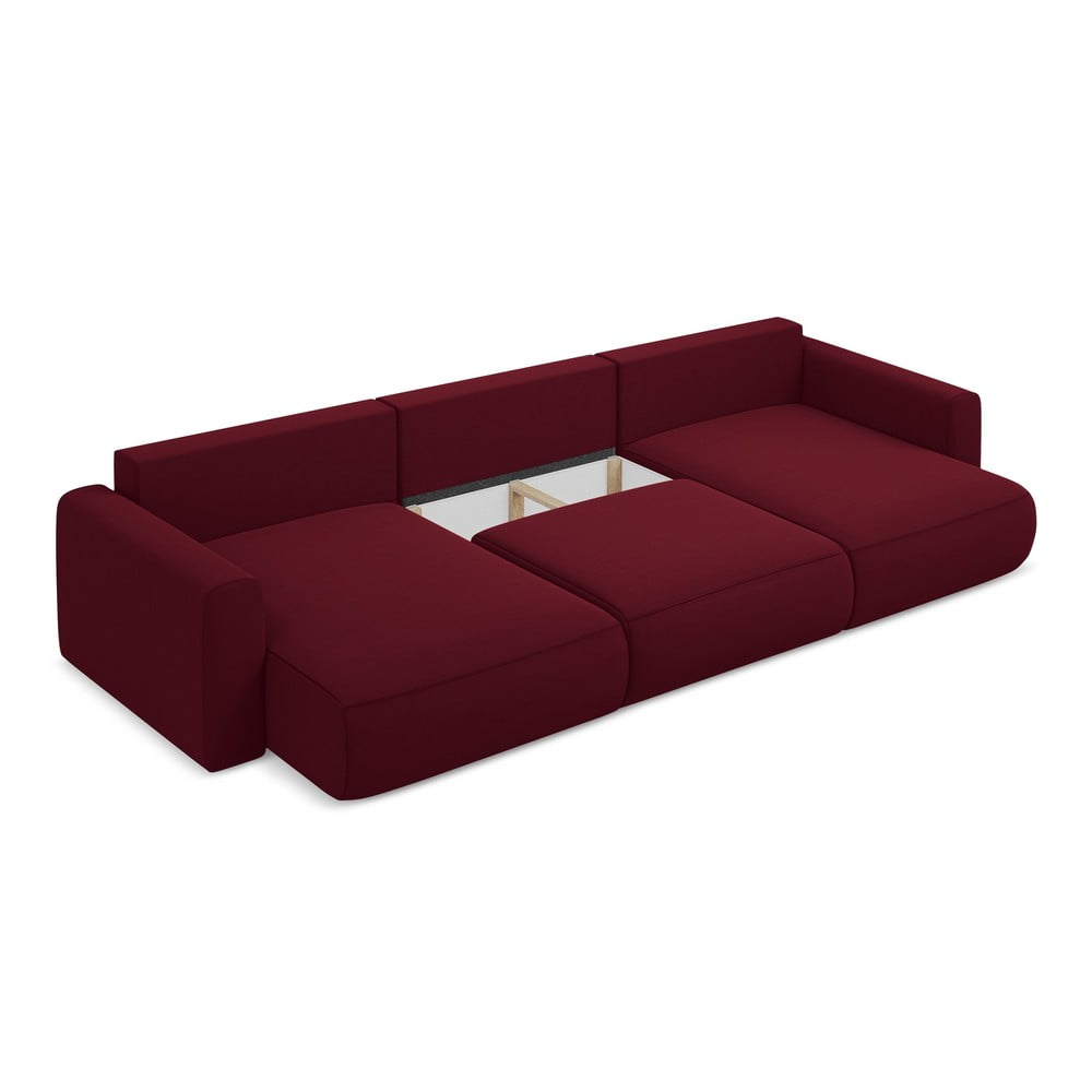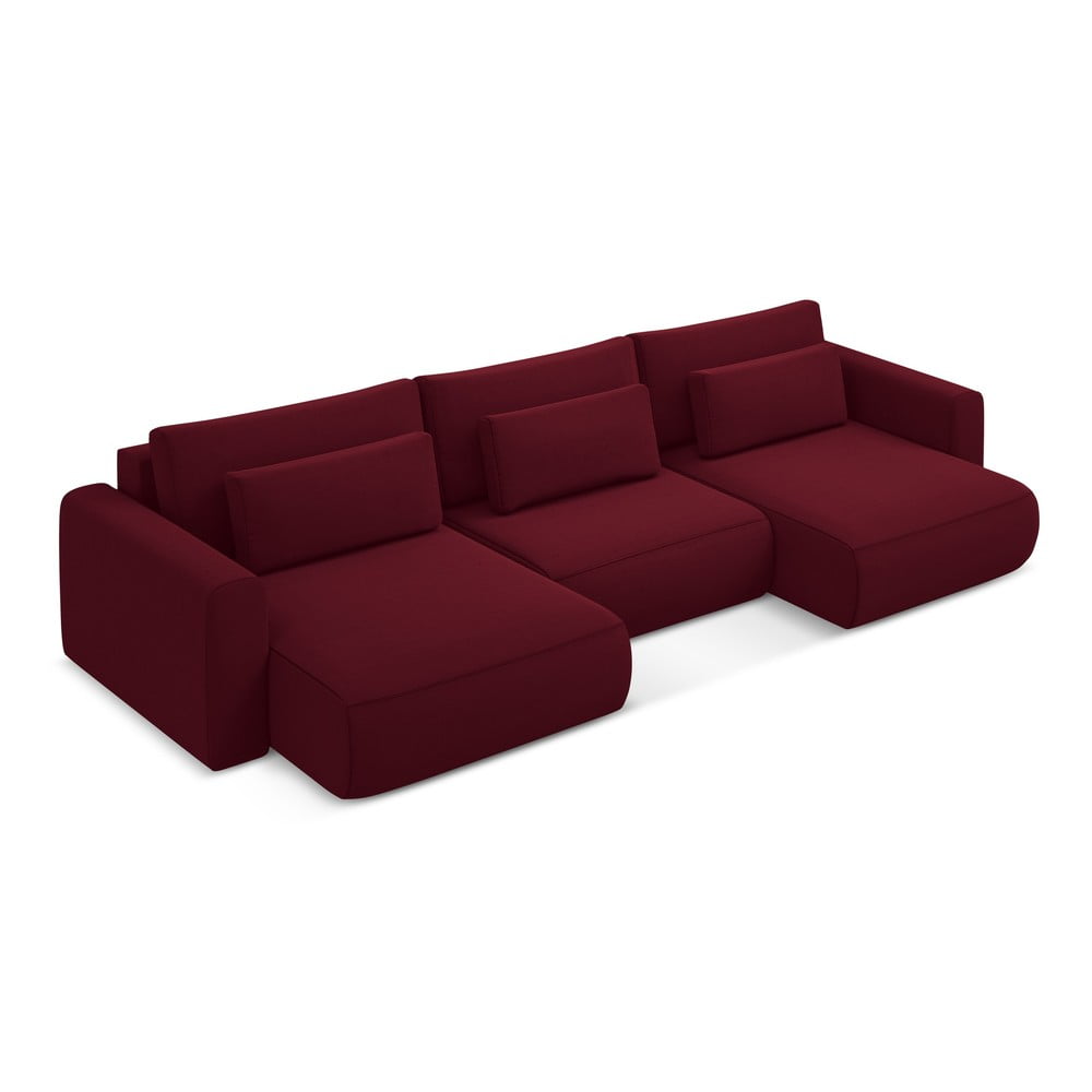 Bordowy aksamitny rozkładany/ze schowkiem narożnik (w kształcie litery U) Kapua – Makamii