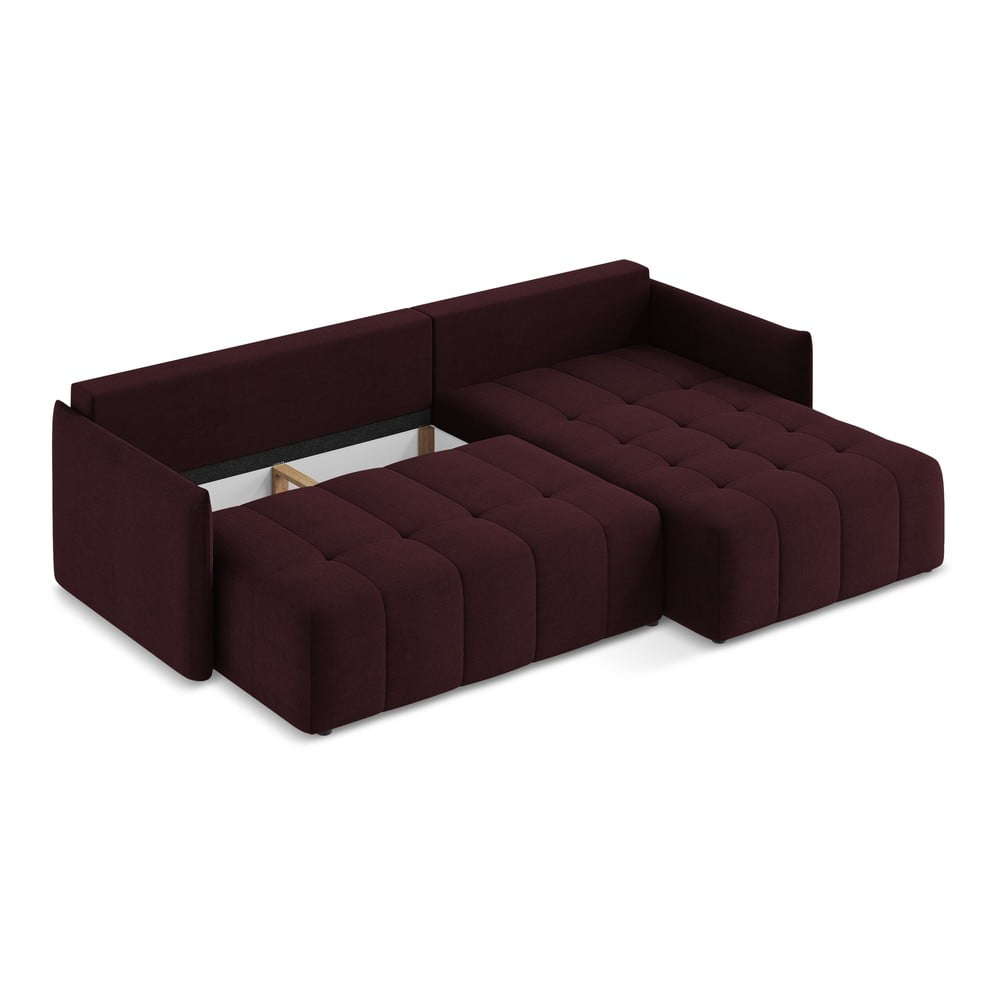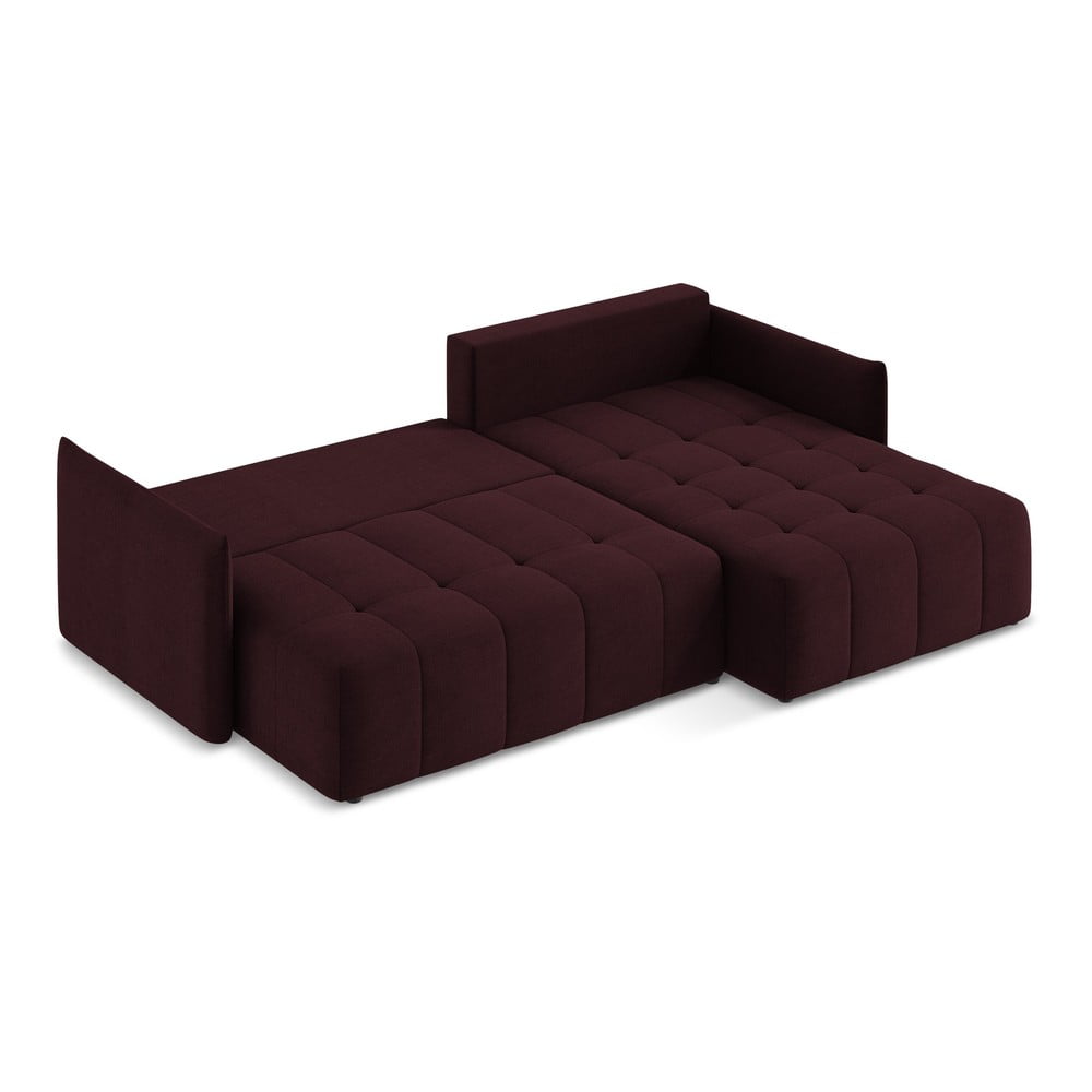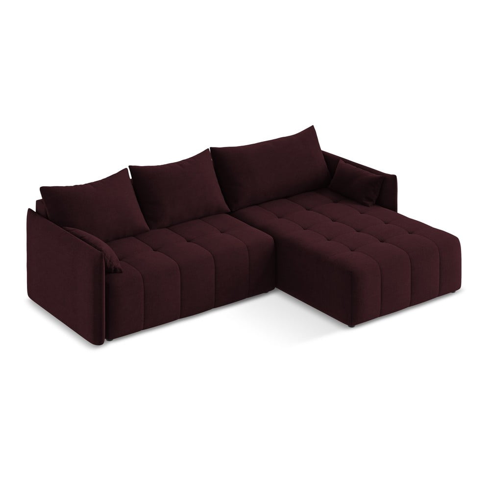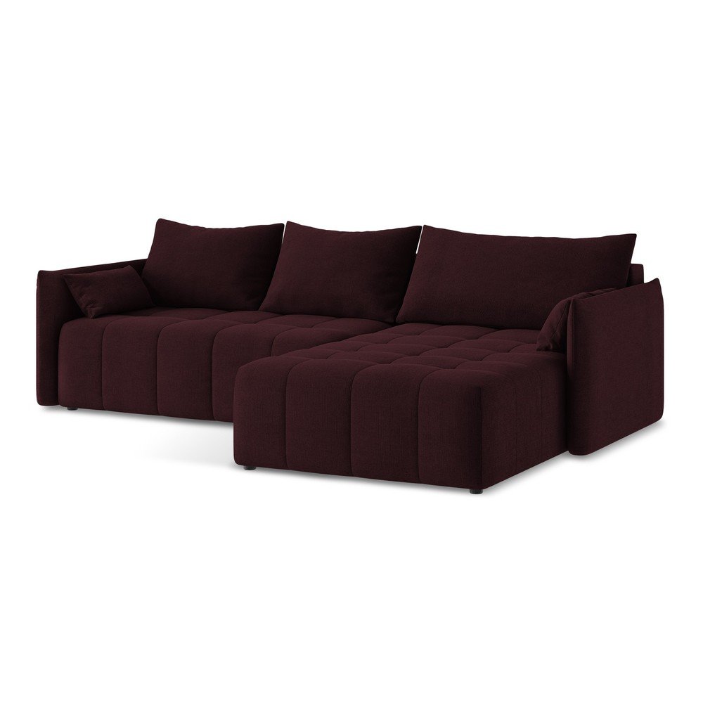 Bordowy rozkładany/ze schowkiem narożnik (prawostronny/z szezlongiem) Moku – Makamii