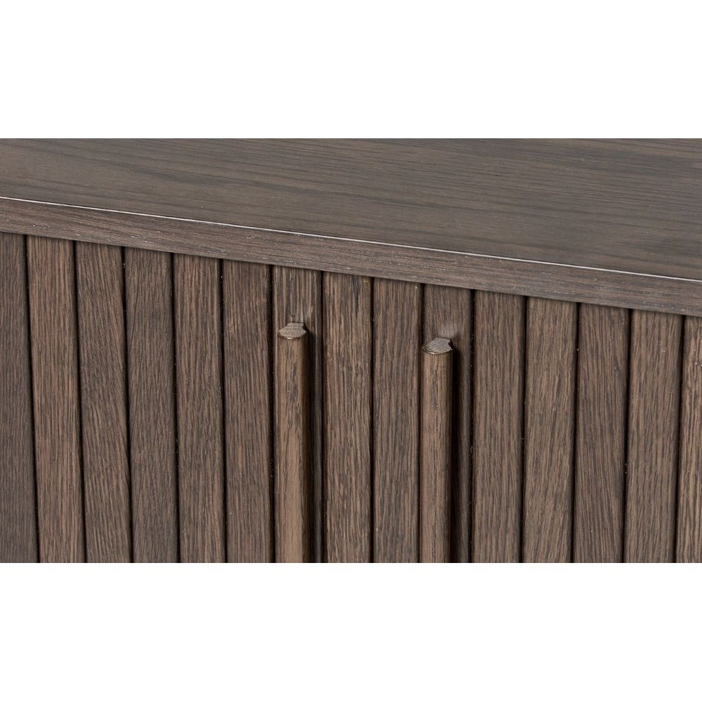 Brązowa komoda w dekorze dębu z drzwiami przesuwnymi 140x76x45 cm Meta – Unique Furniture