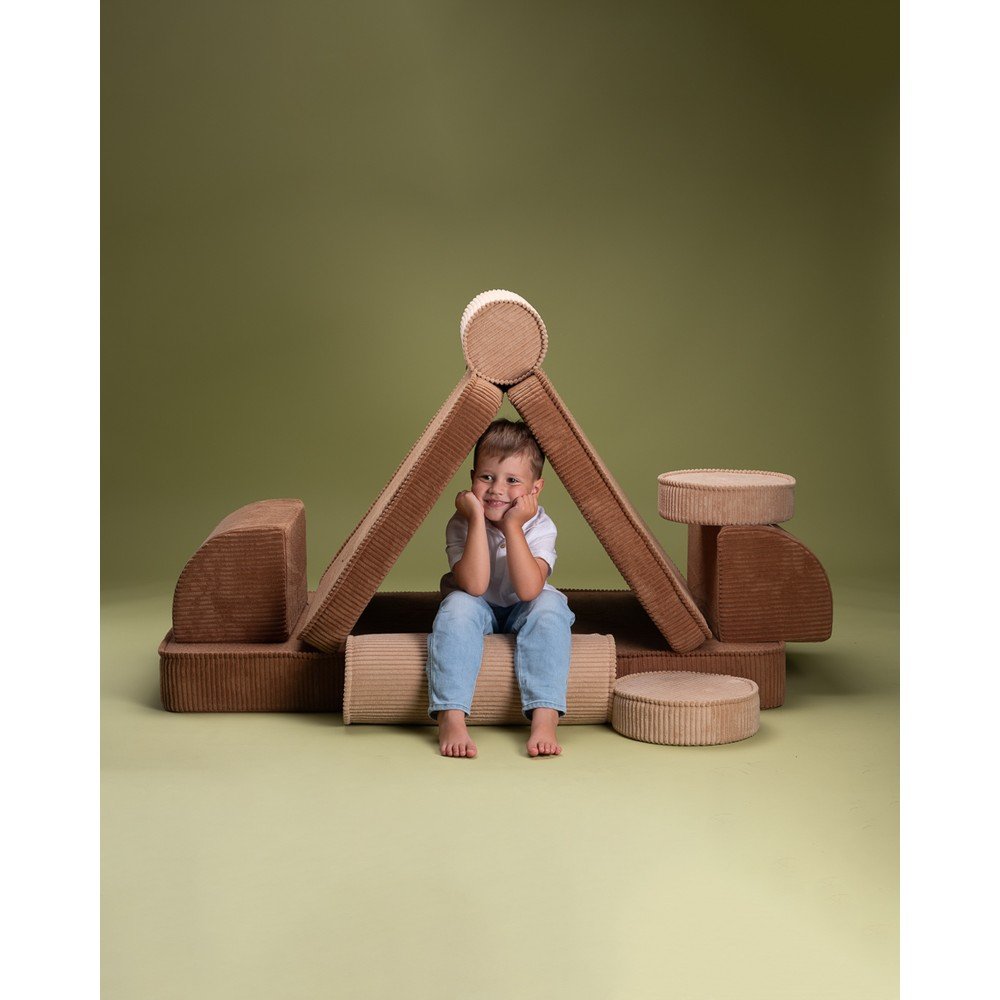 Wszechstronna sofa Settee marki Wigiwama została zaprojektowana z myślą o niekończącej się zabawie i relaksie. Sofa składa się z 9 elementów, które pozwalają dzieciom budować zamki, samochody lub tajne kryjówki.