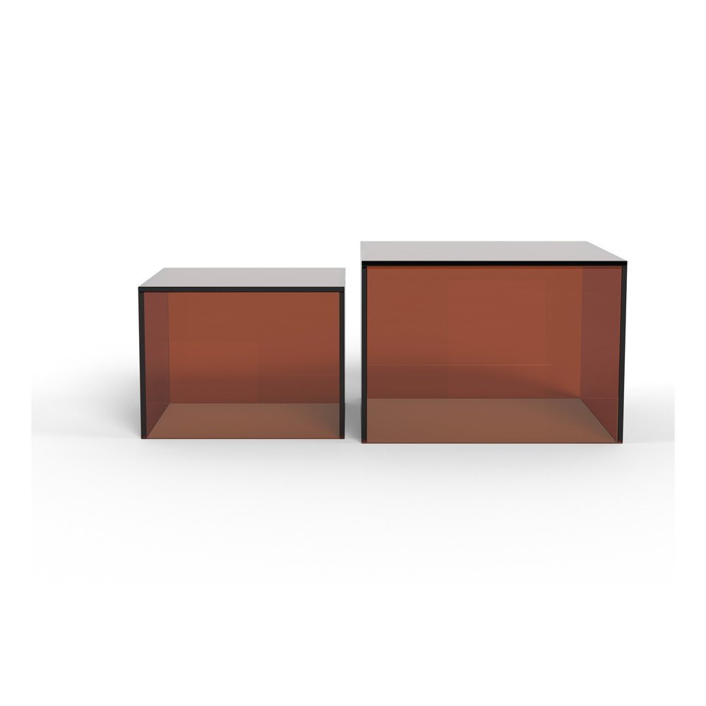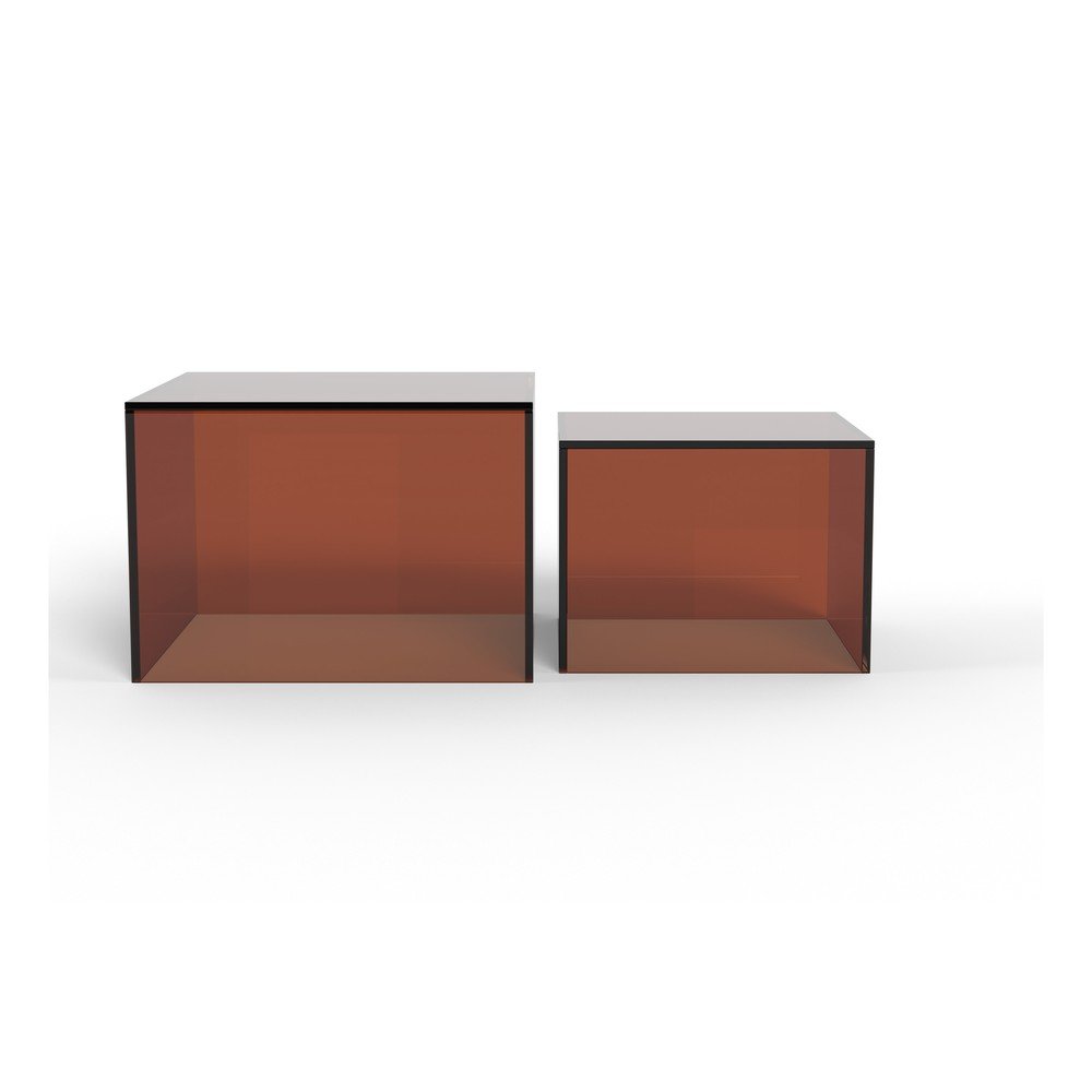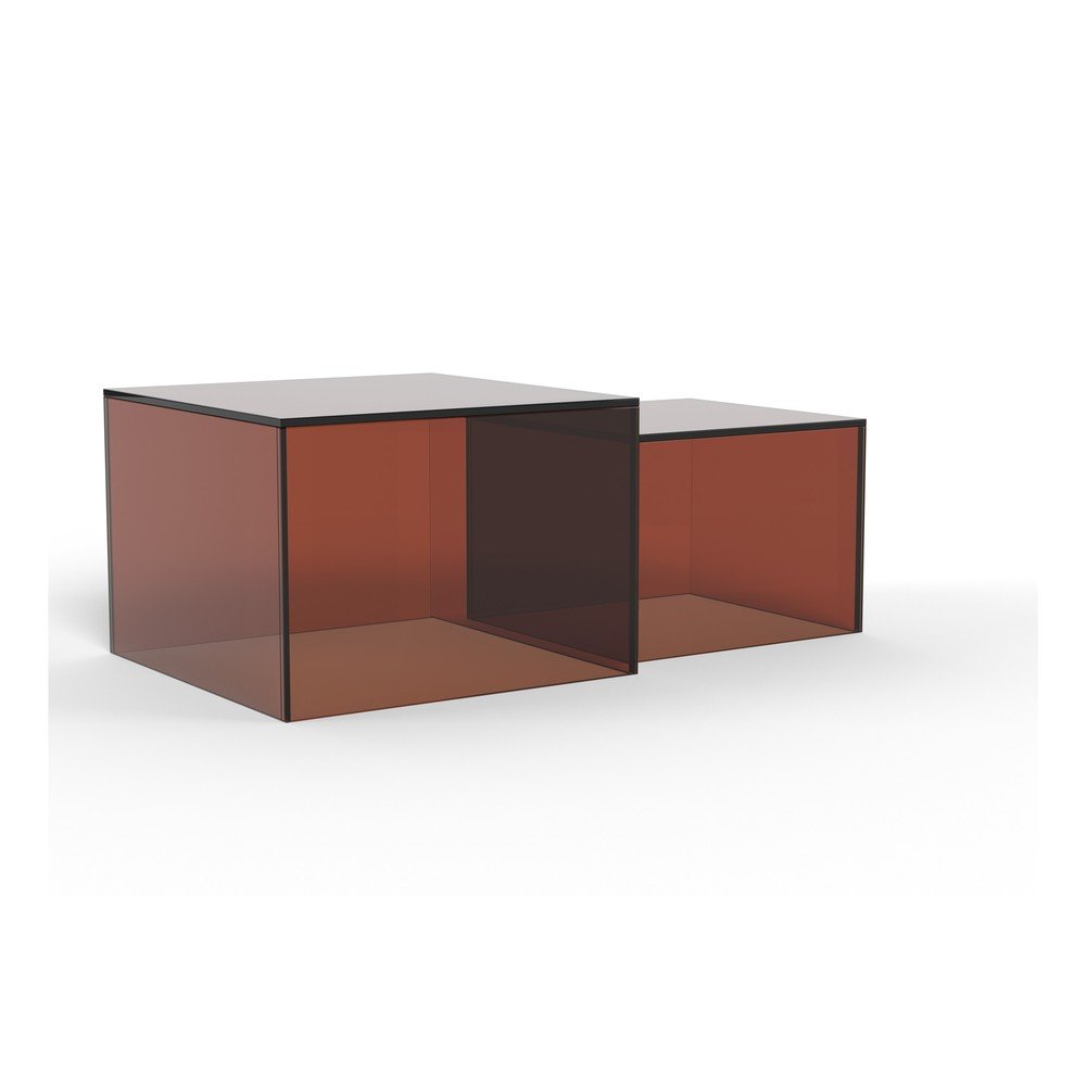 Stoliki te wykonane są ze szkła i doskonale pasują zarówno do nowoczesnych, jak i minimalistycznych wnętrz. Większy stolik ma wymiary 50 x 50 x 35 cm, a mniejszy 40 x 40 x 30 cm.