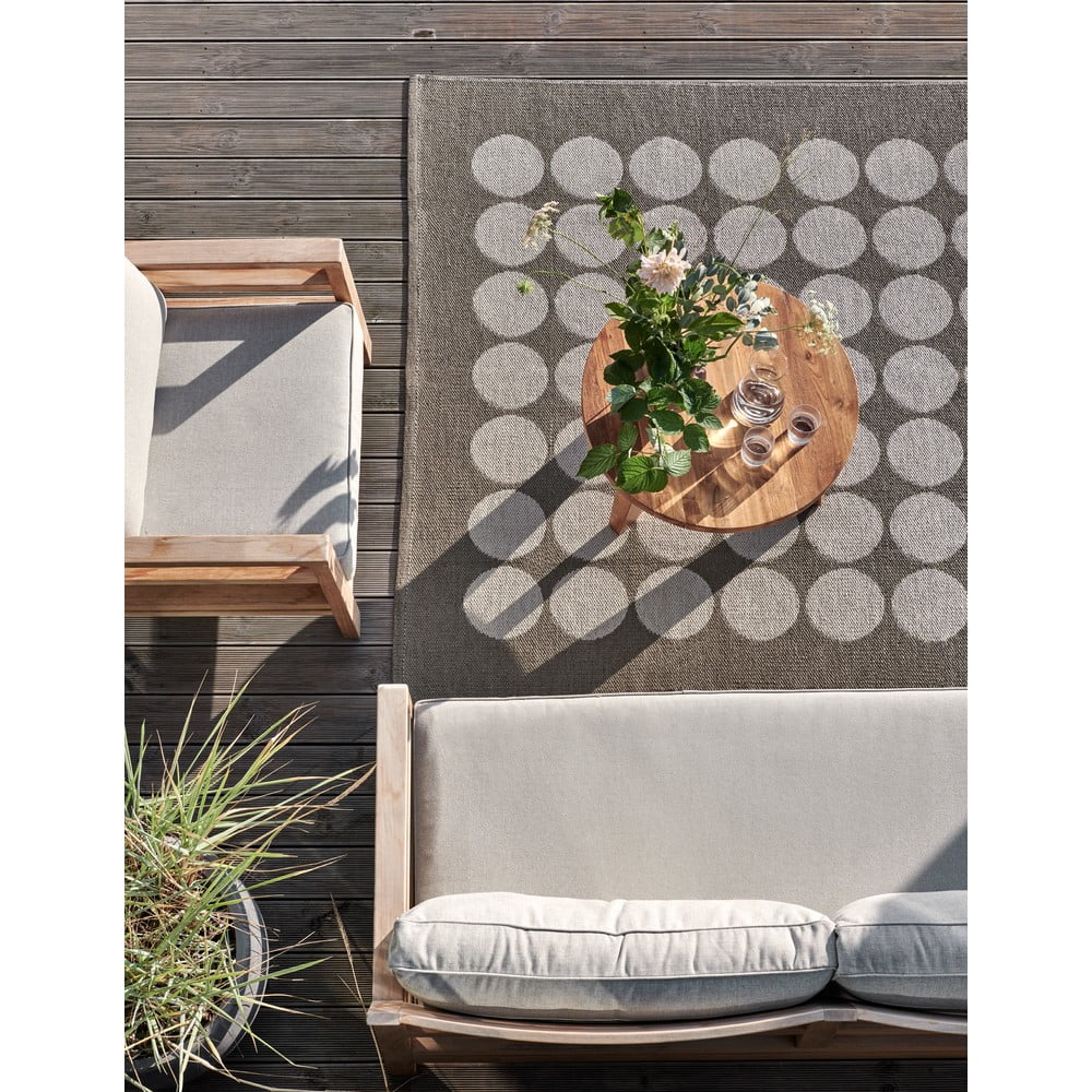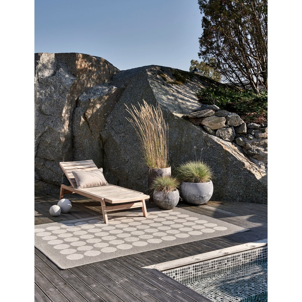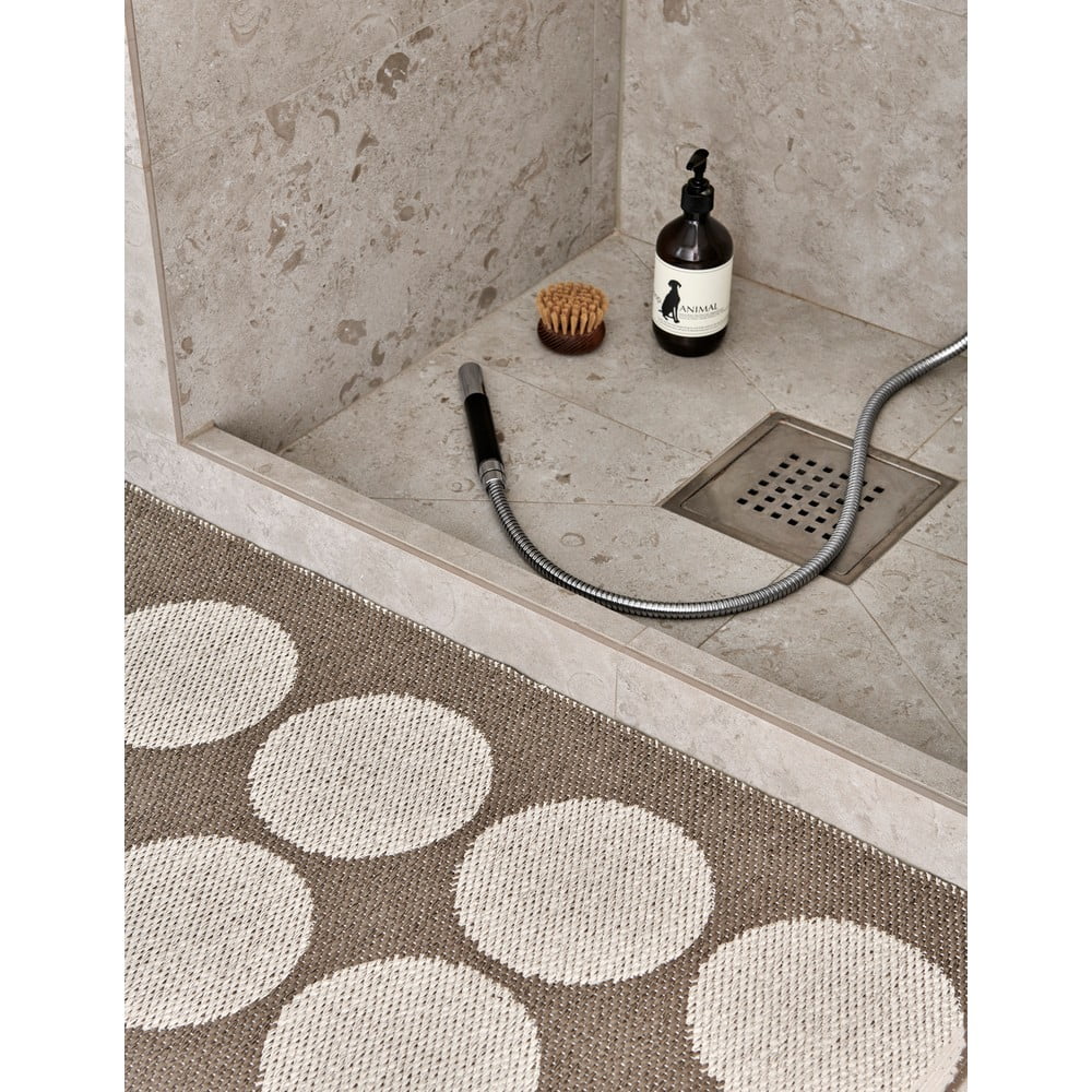 Dywan jest wykonany z wolnego od ftalanów szwedzkiego PVC i jest tkany na tradycyjnych krosnach we własnej tkalni marki. Ze względu na charakter materiału, jest on trwały, bardzo wytrzymały i nadaje się do użytku wewnątrz i na zewnątrz. Jest bardzo łatwy w utrzymaniu w czystości – można go prać ręcznie lub w pralce w temperaturze 30°C.