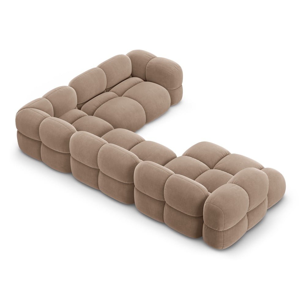 Brązowy aksamitny narożnik (prawostronny/w kształcie litery U) Loretto – Cosmopolitan Design