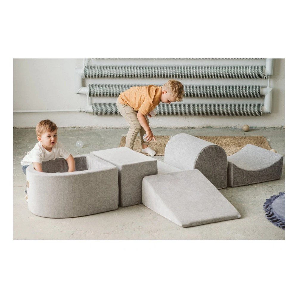 Piankowy plac zabaw Montessori marki Meowbaby to pięcioczęściowy zestaw modułów, który pobudza dziecięcą wyobraźnię i rozwija kreatywne myślenie. Może być wykorzystywany do gier, ćwiczeń, torów przeszkód lub budowania konstrukcji przestrzennych. Poszczególne elementy o przyjemnej prążkowanej fakturze mogą również służyć jako wygodne poduszki do siedzenia.