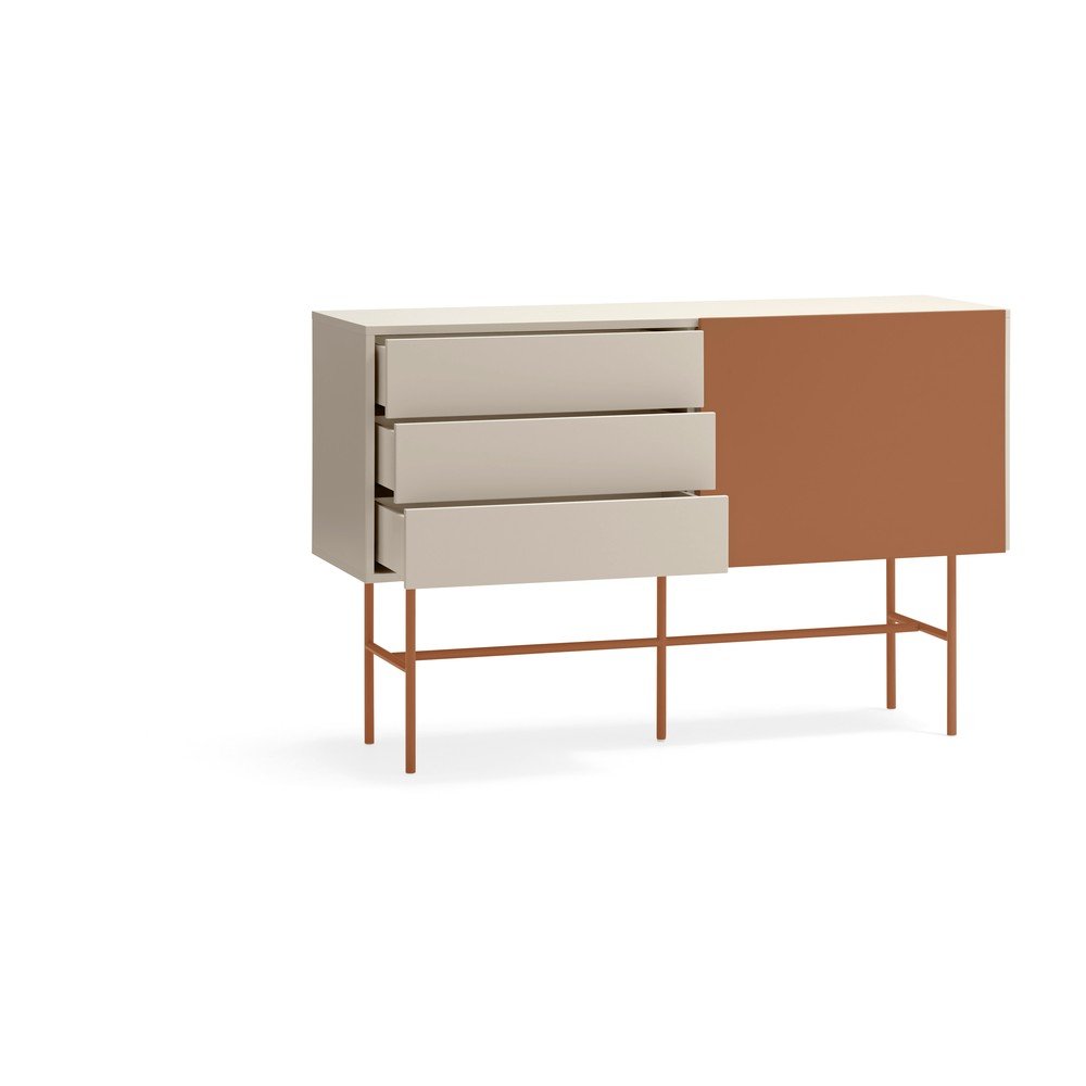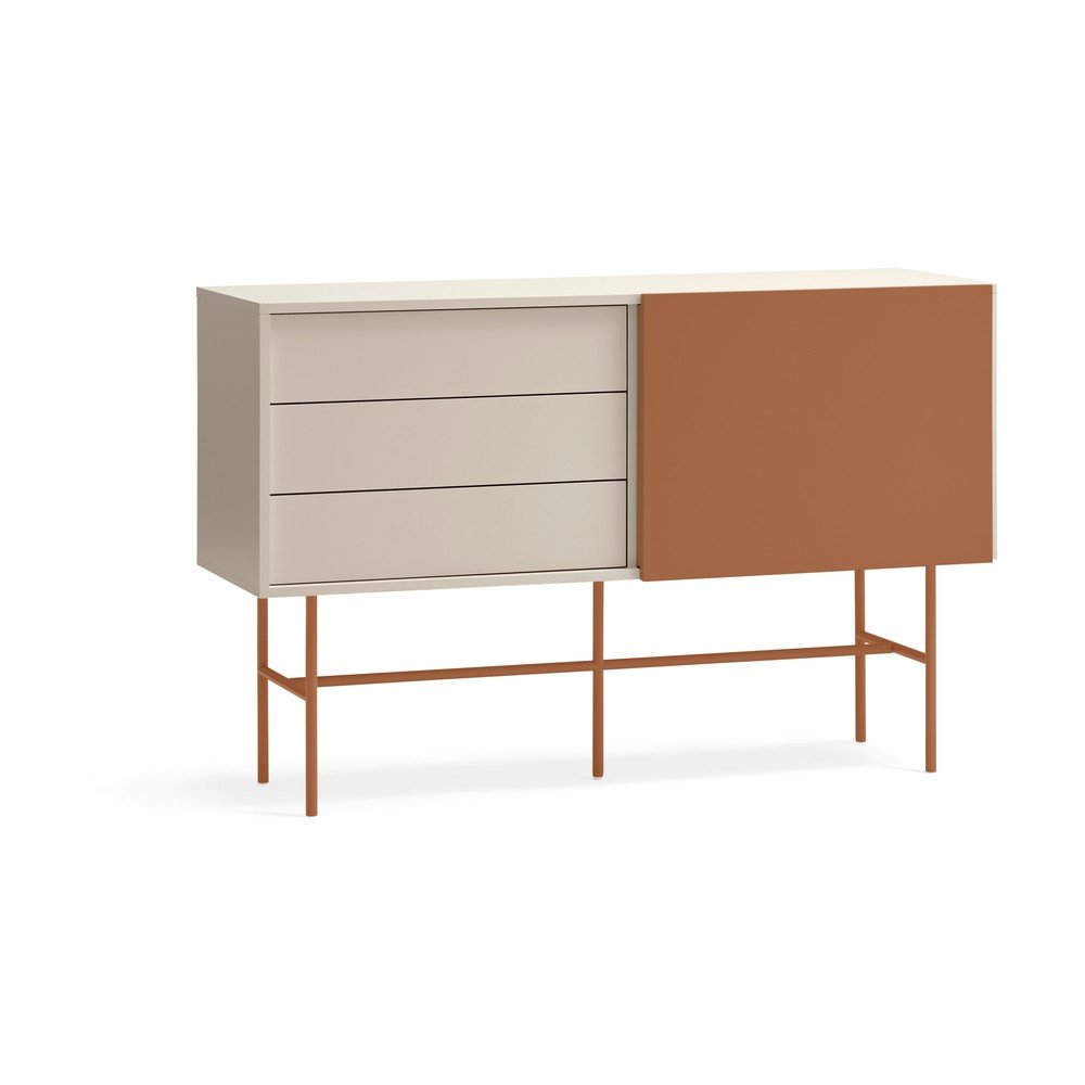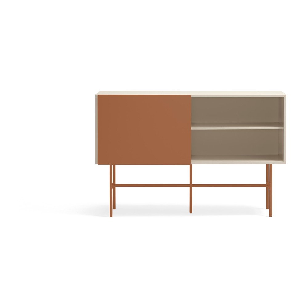 Ceglasto-beżowa niska komoda z drzwiami przesuwnymi 140×91 cm Nube – Teulat
