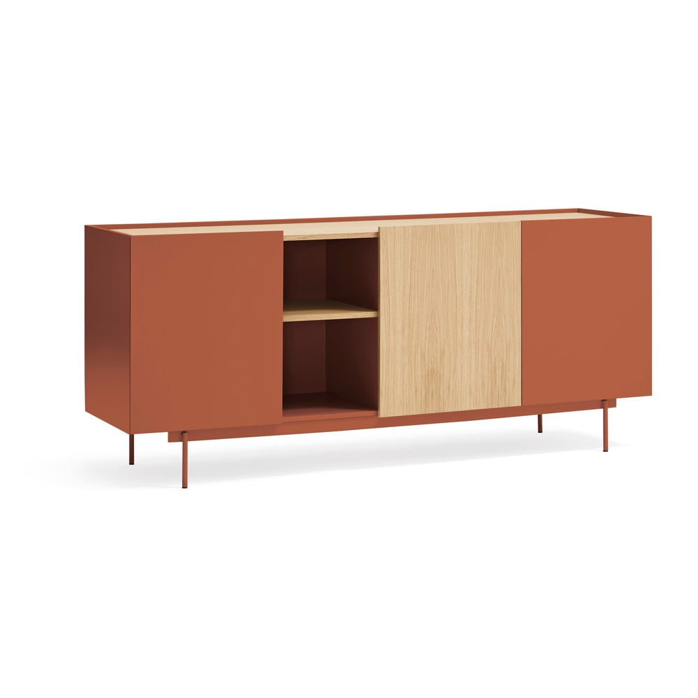 Ceglasto-naturalna niska komoda w dekorze dębu 180×78 cm Otto – Teulat