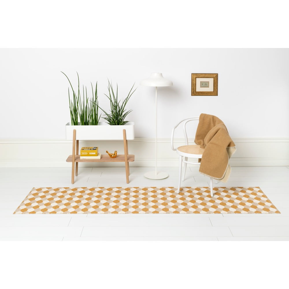 Dywan jest wykonany ze szwedzkiego PVC bez ftalanów tkanego na tradycyjnych krosnach. Ze względu na charakter materiału jest trwały, bardzo wytrzymały i nadaje się do użytku wewnątrz i na zewnątrz. Jest bardzo łatwy w utrzymaniu w czystości – można go prać ręcznie lub w pralce w temperaturze 30°C.