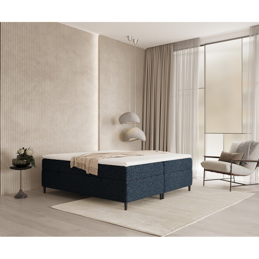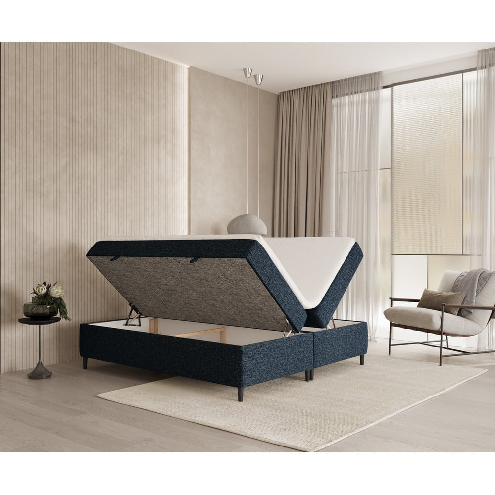 Ciemnoniebieskie łóżko boxspring ze schowkiem 180×200 cm Araya – Maison de Rêve